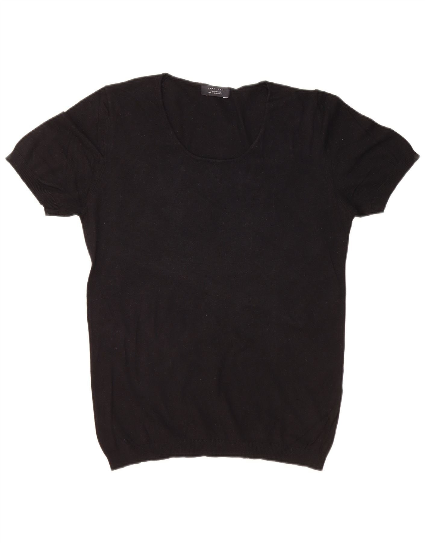 ZARA Suéter masculino de manga curta com gola canoa médio preto
