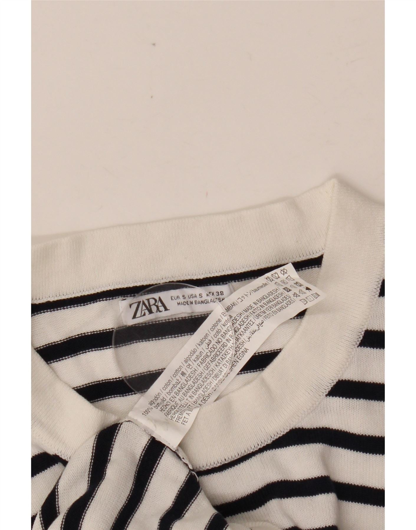 ZARA Top masculino de manga comprida pequeno algodão listrado branco