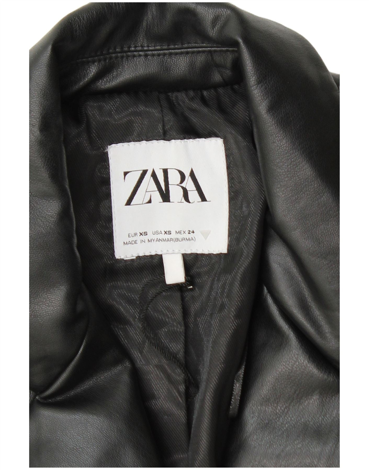 - Descrição da IA: Esta jaqueta blazer feminina da Zara é feita de couro sintético preto elegante. Possui decote clássico com gola e mangas compridas. Um fecho de botão único cria uma frente limpa. Dois bolsos funcionais acrescentam praticidade. O corte regular oferece uma silhueta confortável e estruturada. Esta peça combina alfaiataria clássica com um toque moderno.