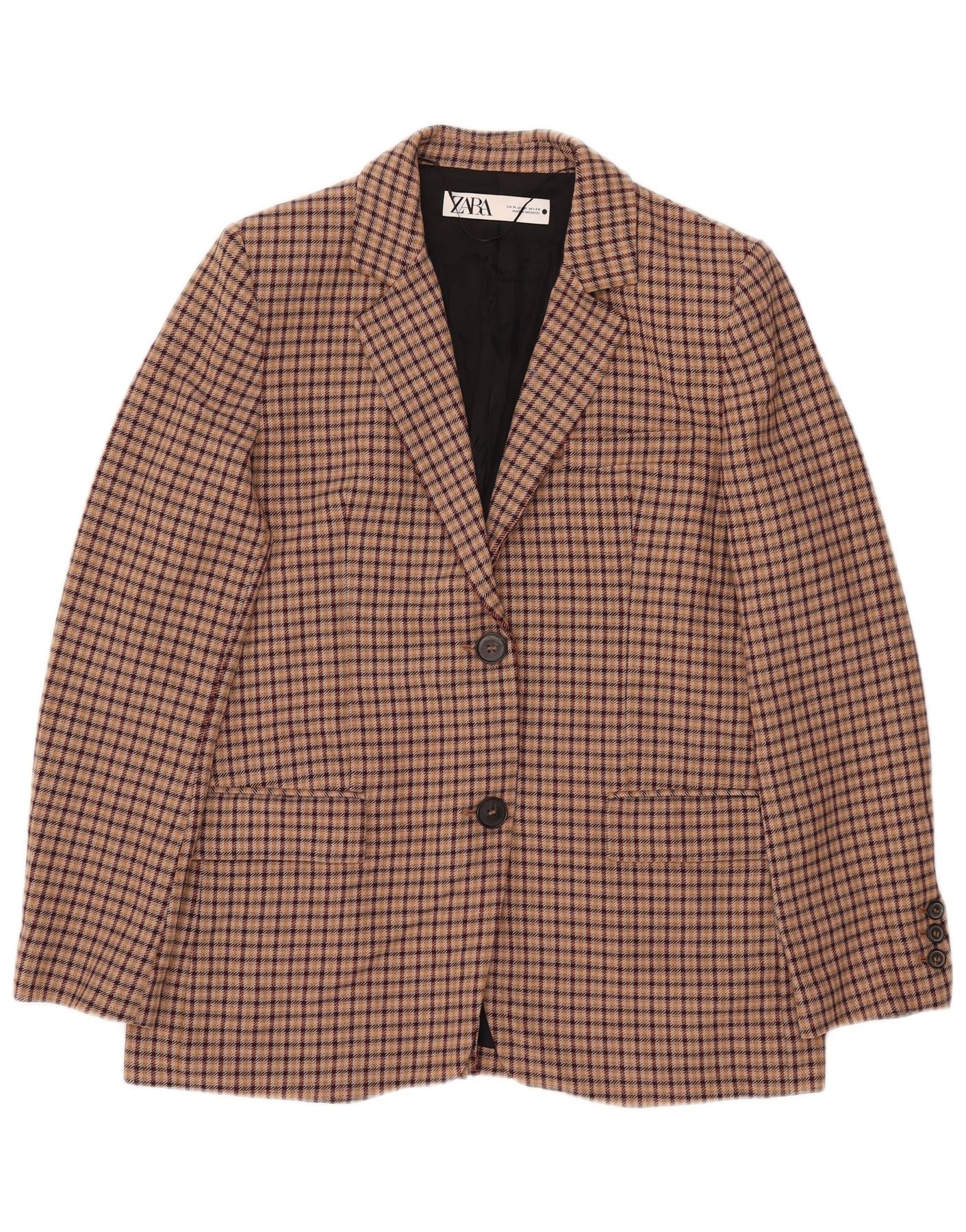 Jaqueta blazer feminina de 2 botões ZARA Reino Unido 14 viscose xadrez marrom médio