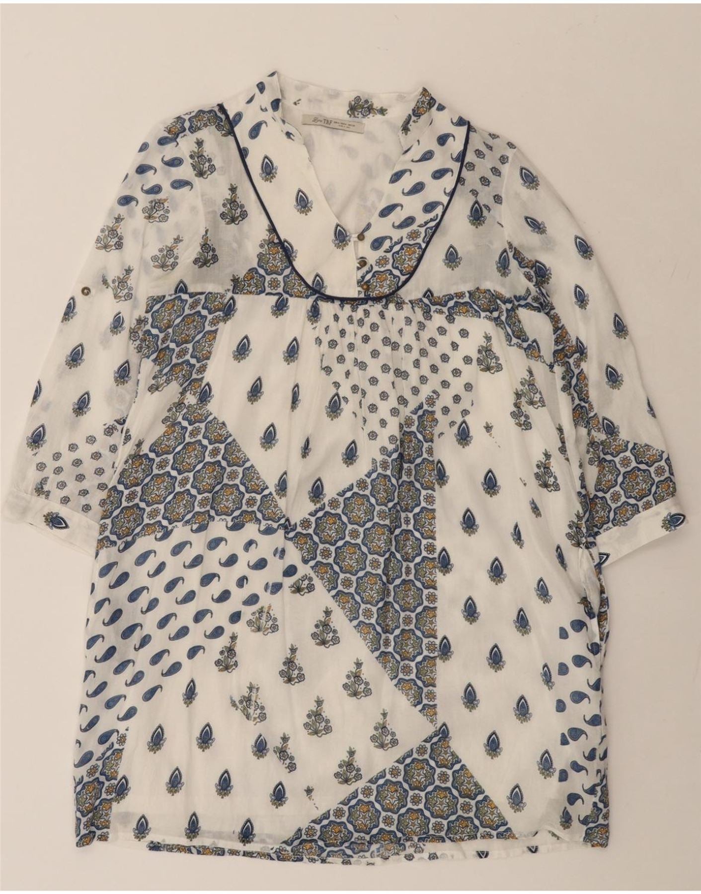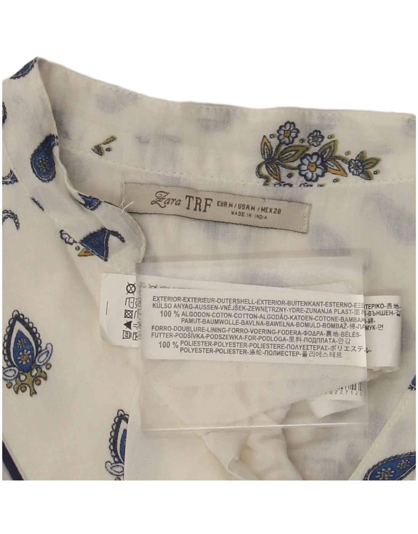 ZARA Vestido feminino manga 3/4, Reino Unido 12, médio, branco, algodão paisley
