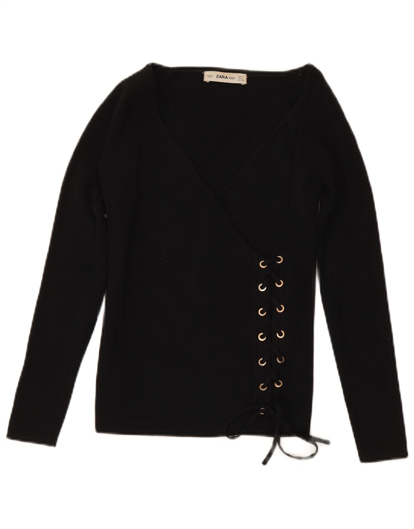 Suéter feminino ZARA manga 3/4 com decote em V Reino Unido 10 pequeno preto viscose