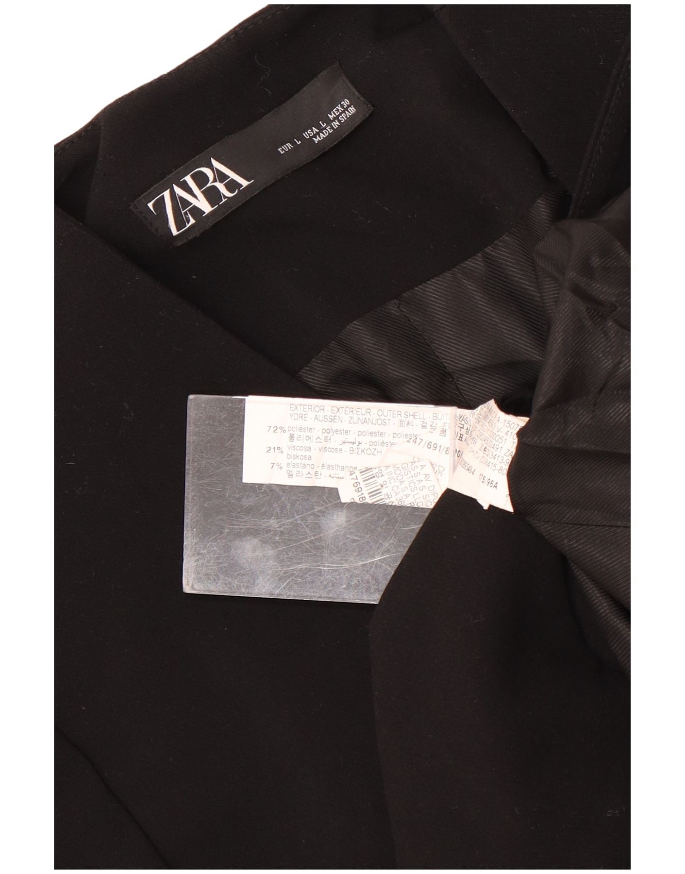 - Composição exata do material: 72% poliéster, 21% viscose, 7% elastano