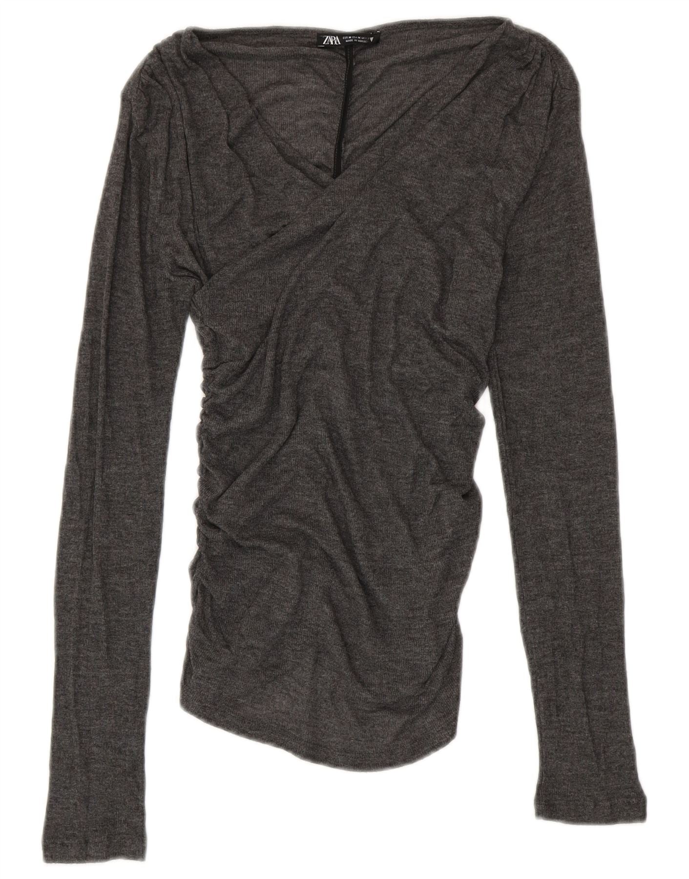 Blusa feminina ZARA UK 12 poliéster cinza médio