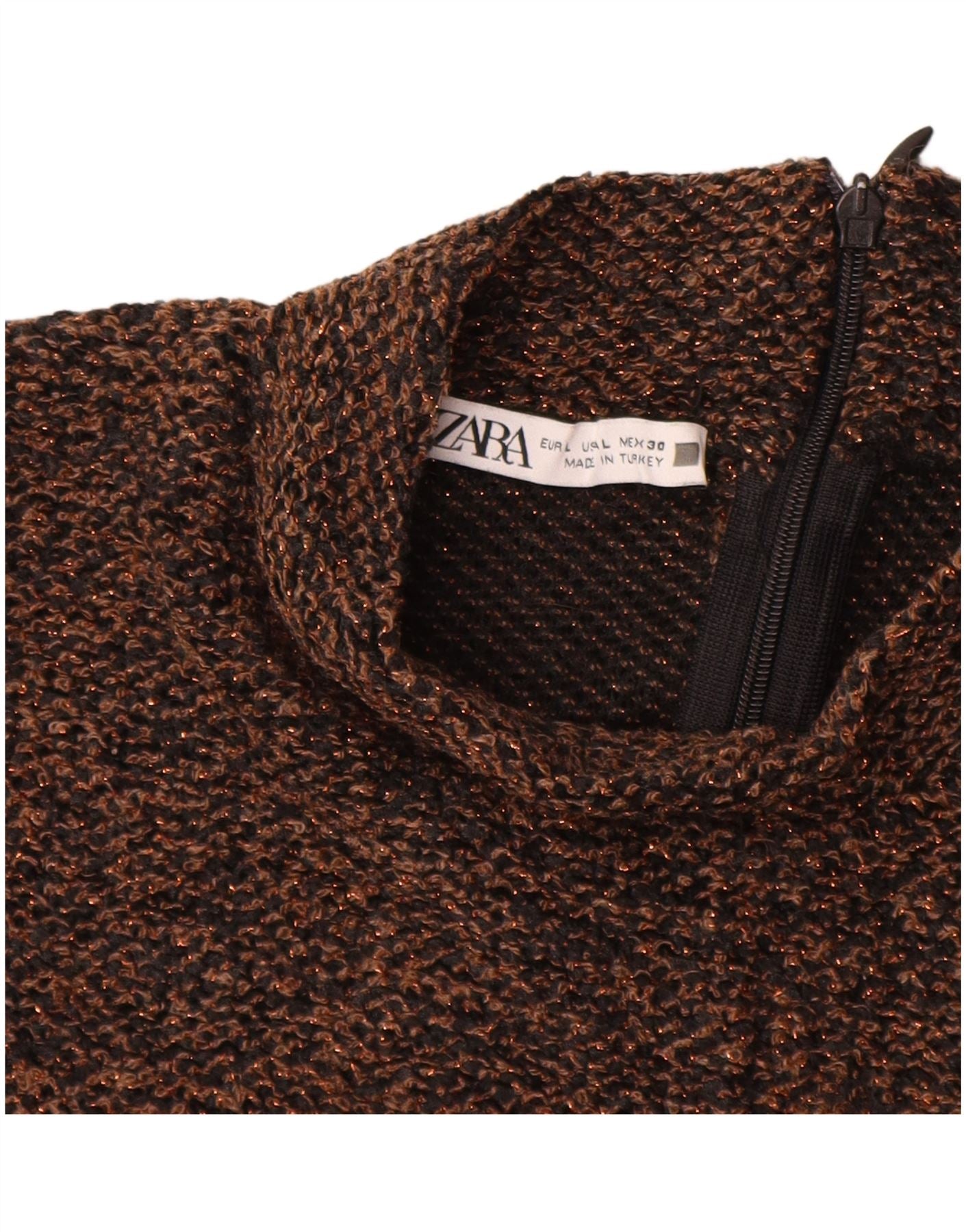 Blusa feminina ZARA UK 14 grande poliéster marrom