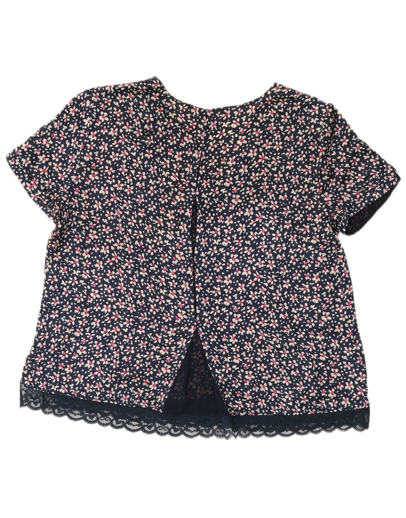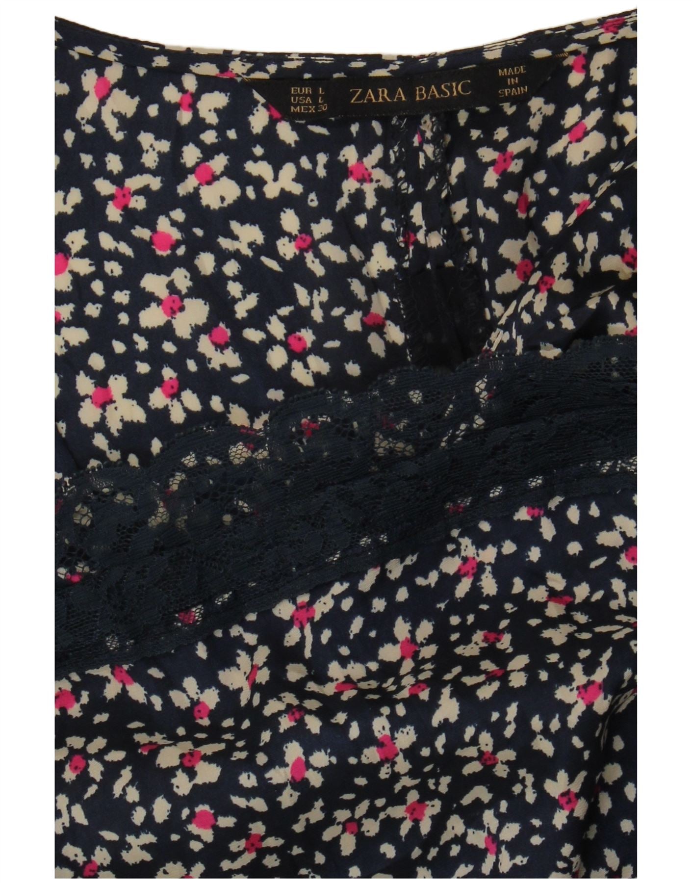 Blusa feminina ZARA UK 16 grande azul marinho floral