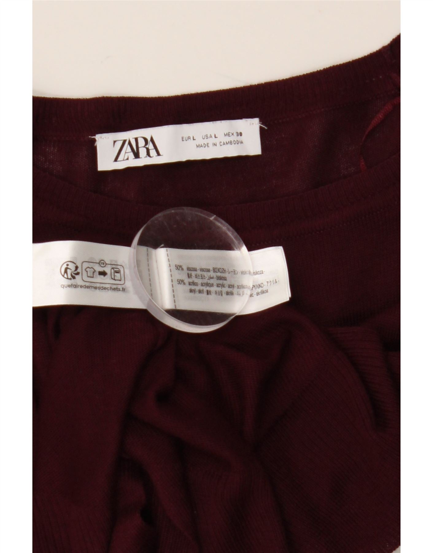 Suéter feminino ZARA com gola canoa, Reino Unido 16, grande viscose cor de vinho