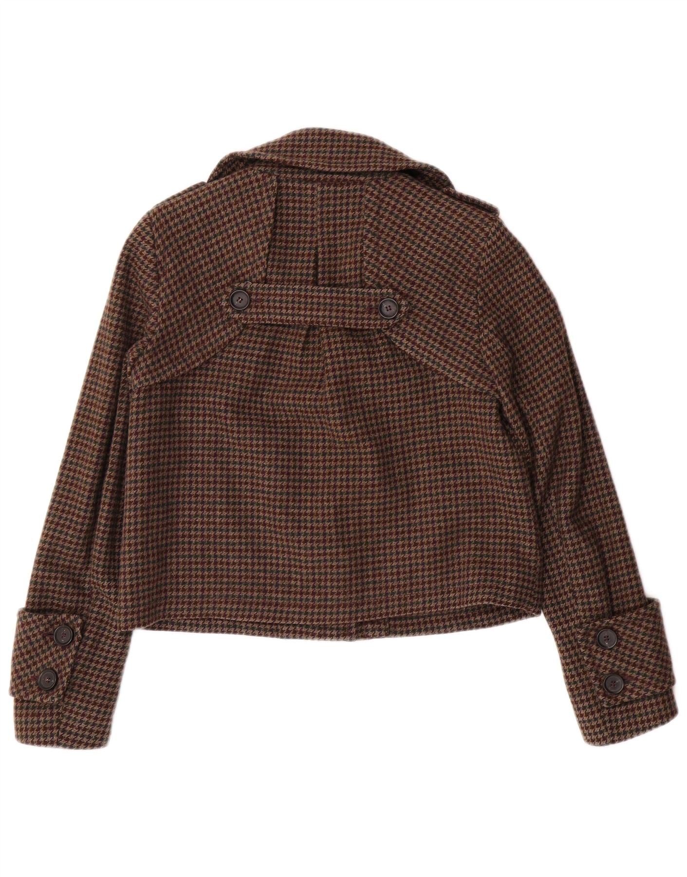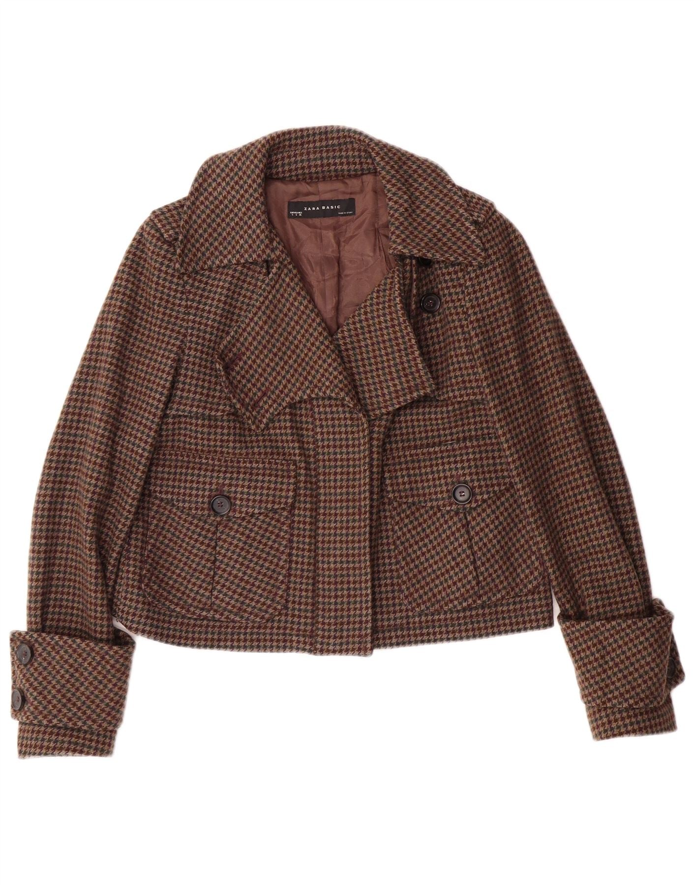 Jaqueta bomber feminina ZARA UK 8 pequena lã marrom houndstooth