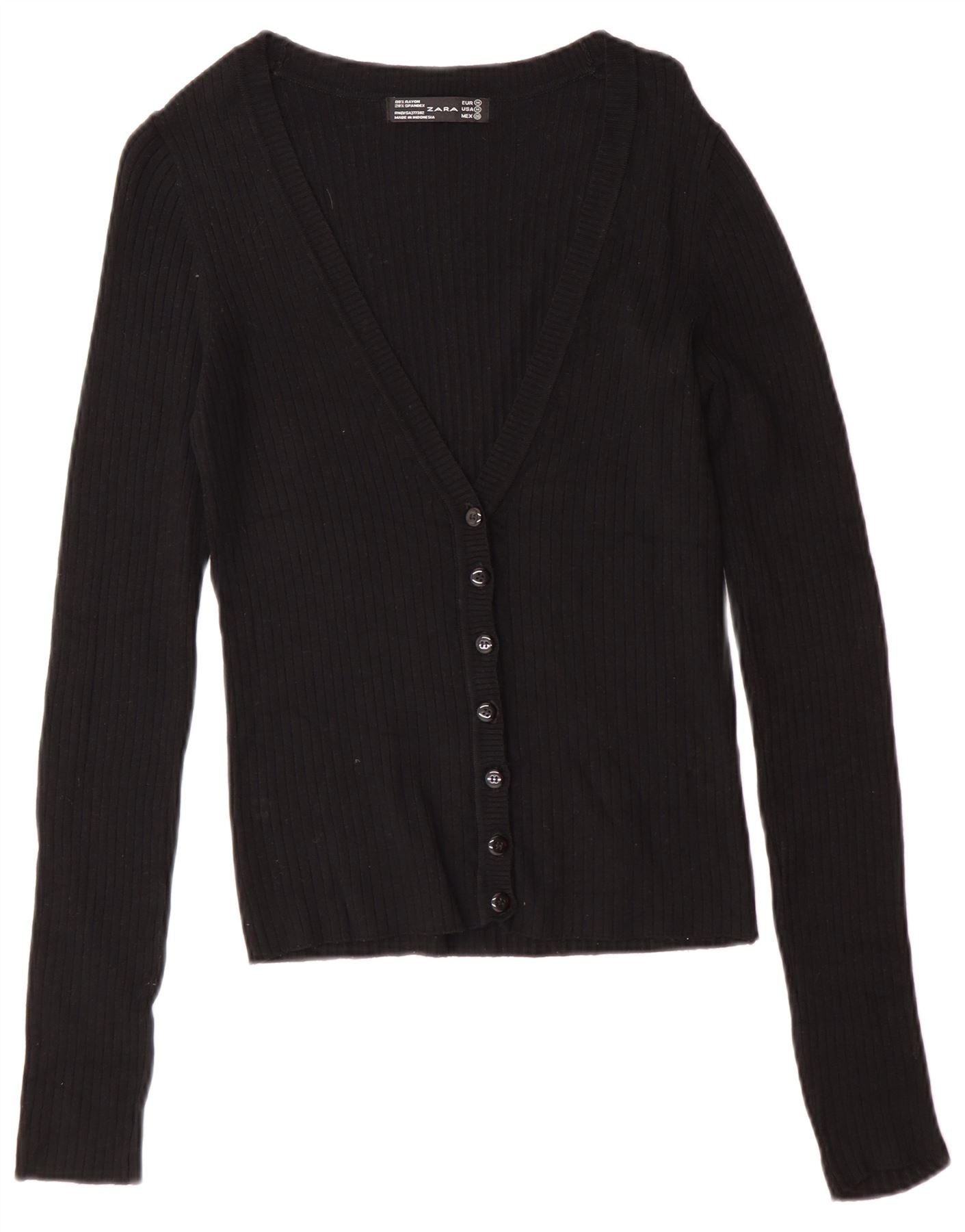Suéter cardigã feminino Zara Reino Unido 12 médio preto rayon
