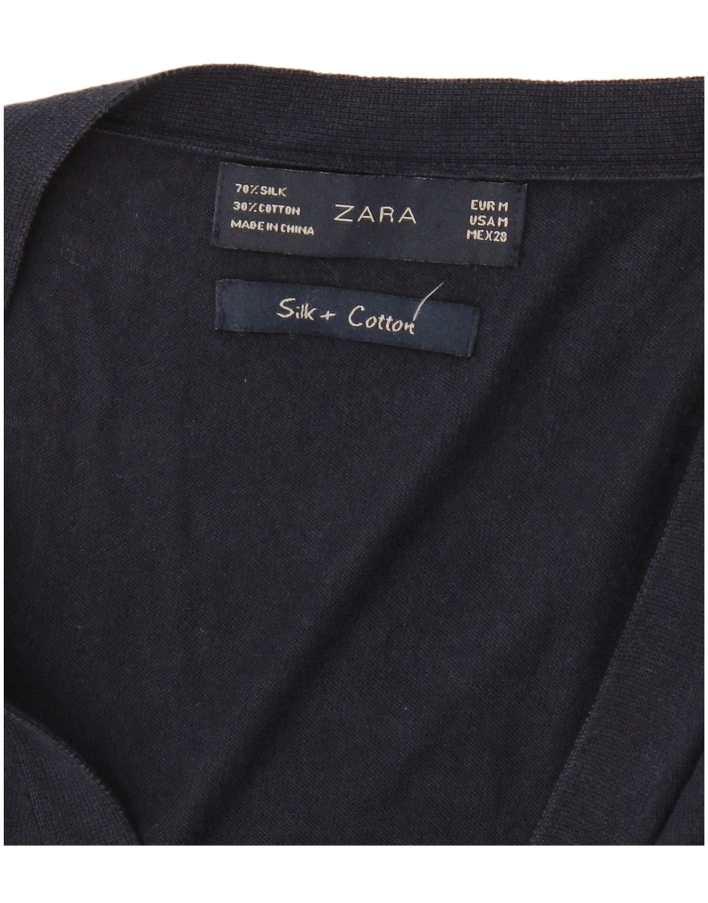 Suéter cardigã feminino ZARA Reino Unido 12 seda azul marinho médio