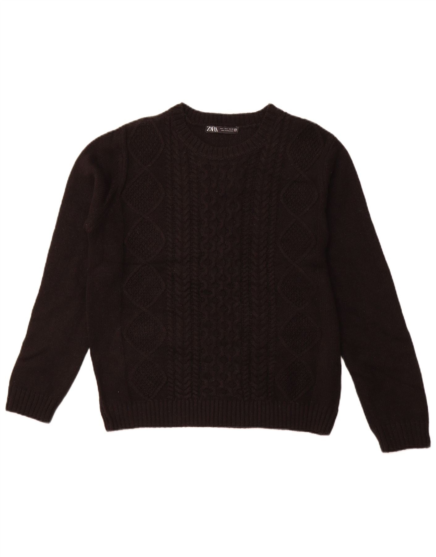 Zara Suéter feminino com gola redonda, Reino Unido 14, grande, preto, acrílico