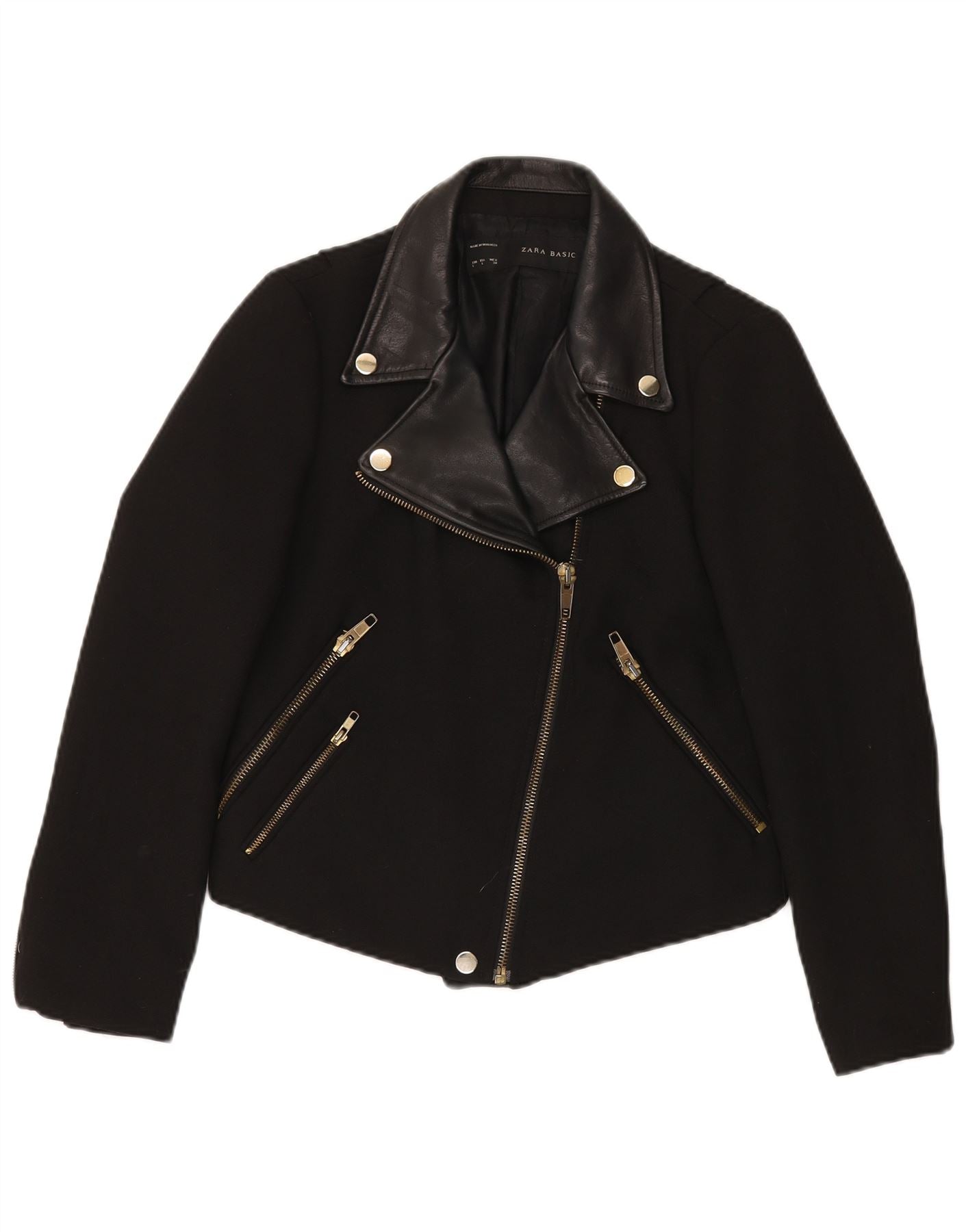 Jaqueta feminina ZARA Crop Biker UK 14 grande preta