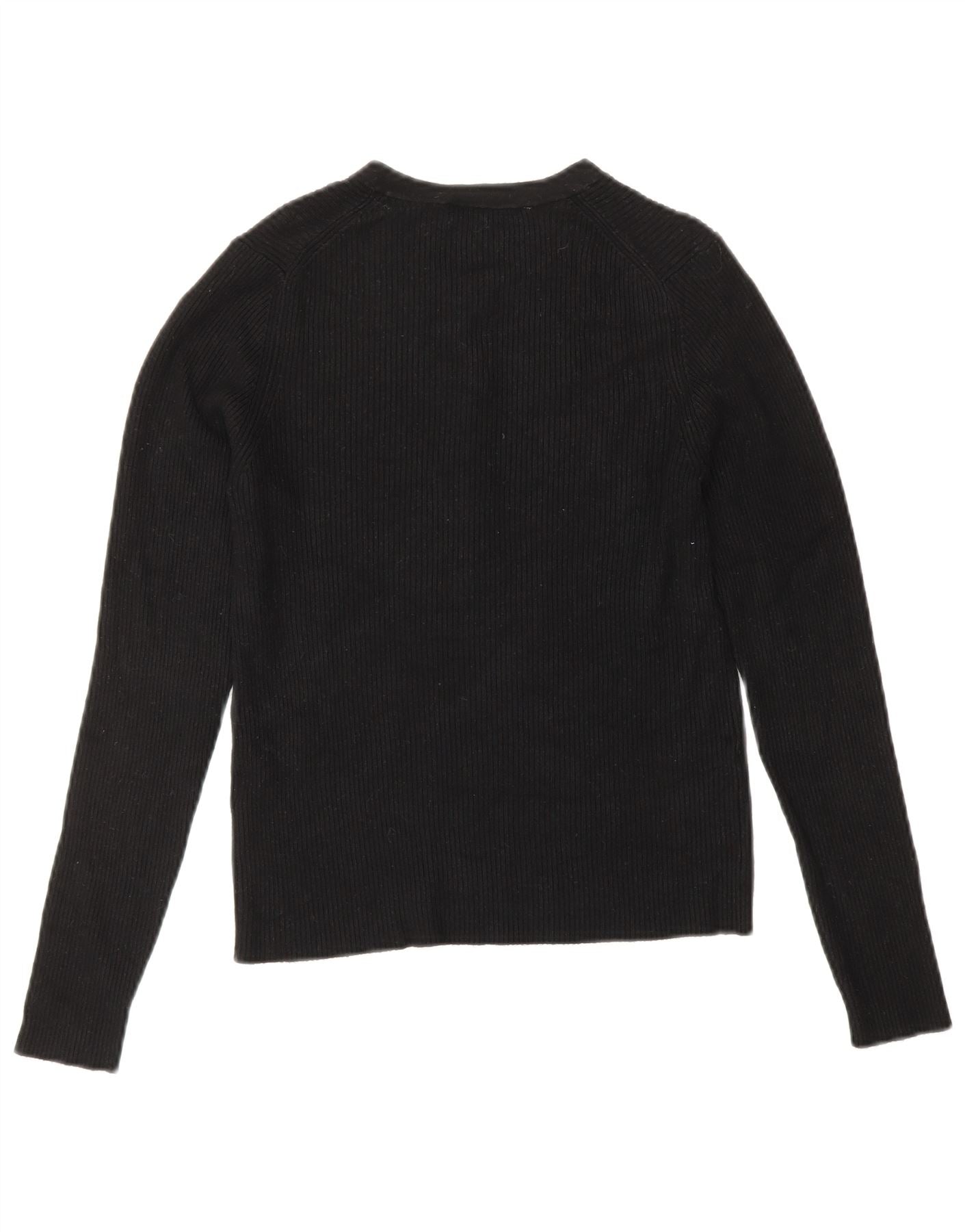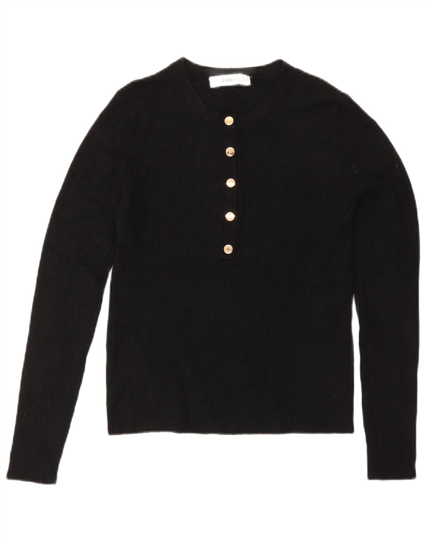Suéter feminino ZARA com gola e botão curto Reino Unido 12 viscose preta média
