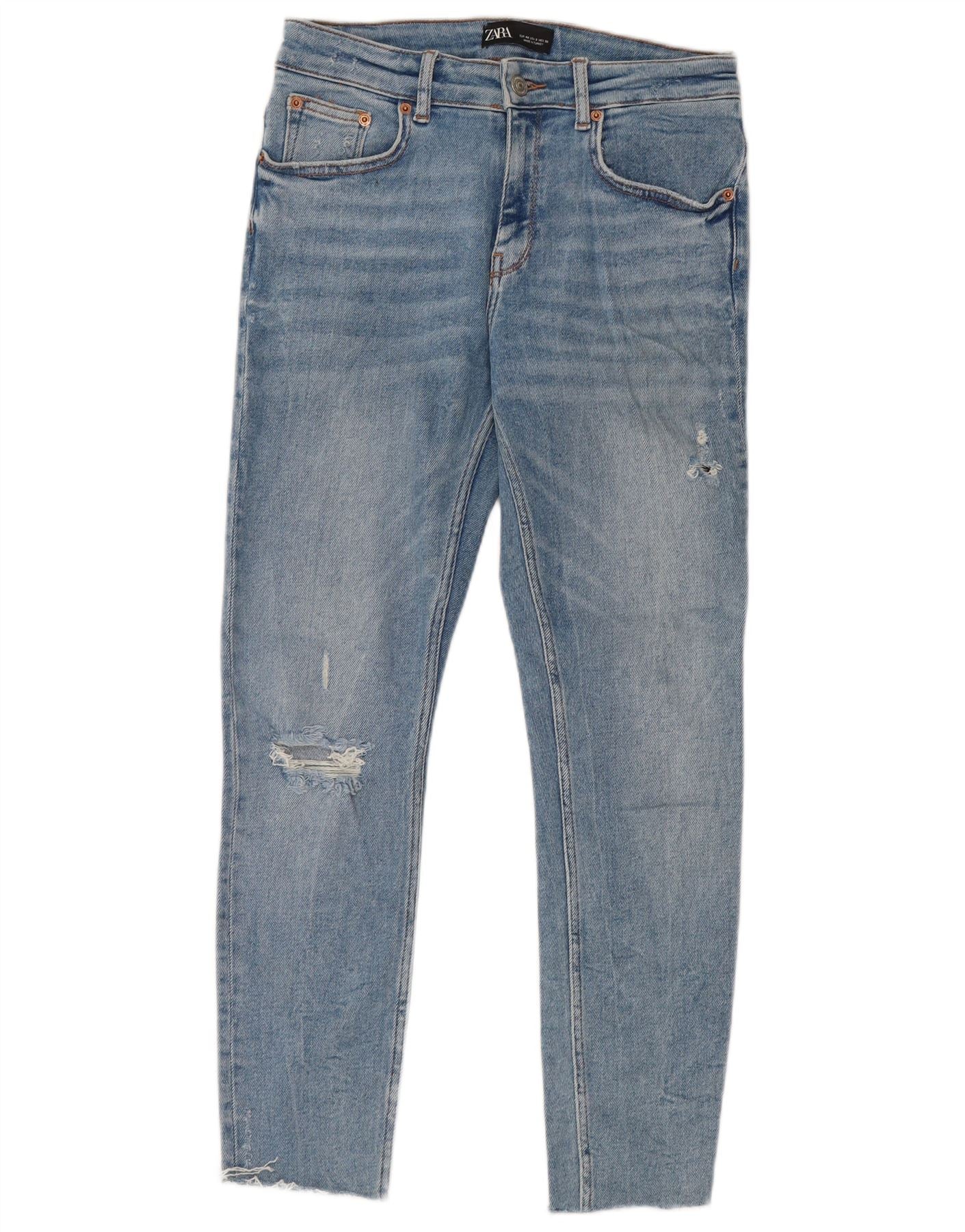 ZARA Calça Jeans Skinny Feminina Crop Distressed EU 40 Médio W30 L26 Azul Algodão