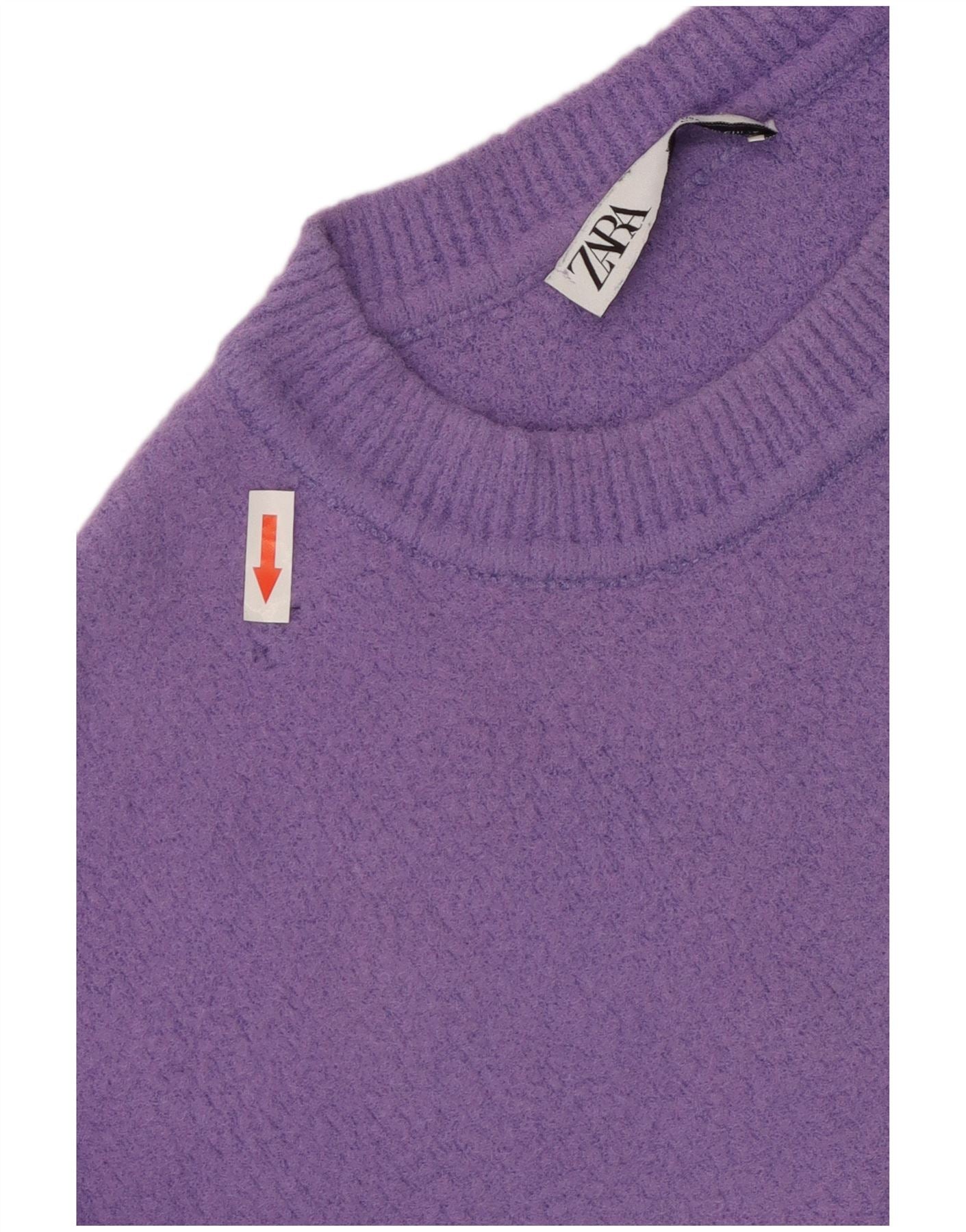 Suéter feminino ZARA com gola redonda grande e gola redonda, tamanho 10, pequeno, roxo
