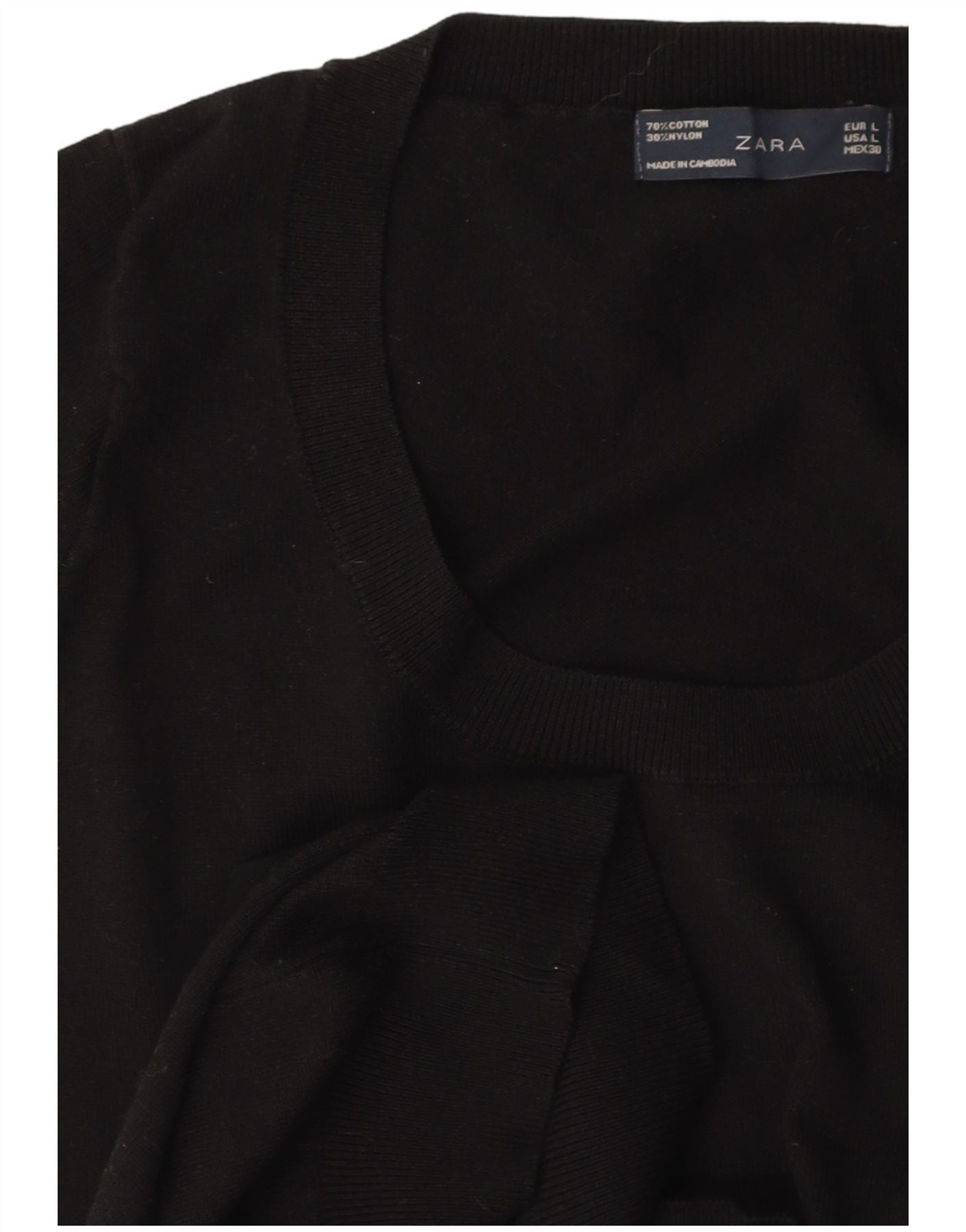 Suéter feminino ZARA de manga curta com gola canoa Reino Unido 14 grande preto
