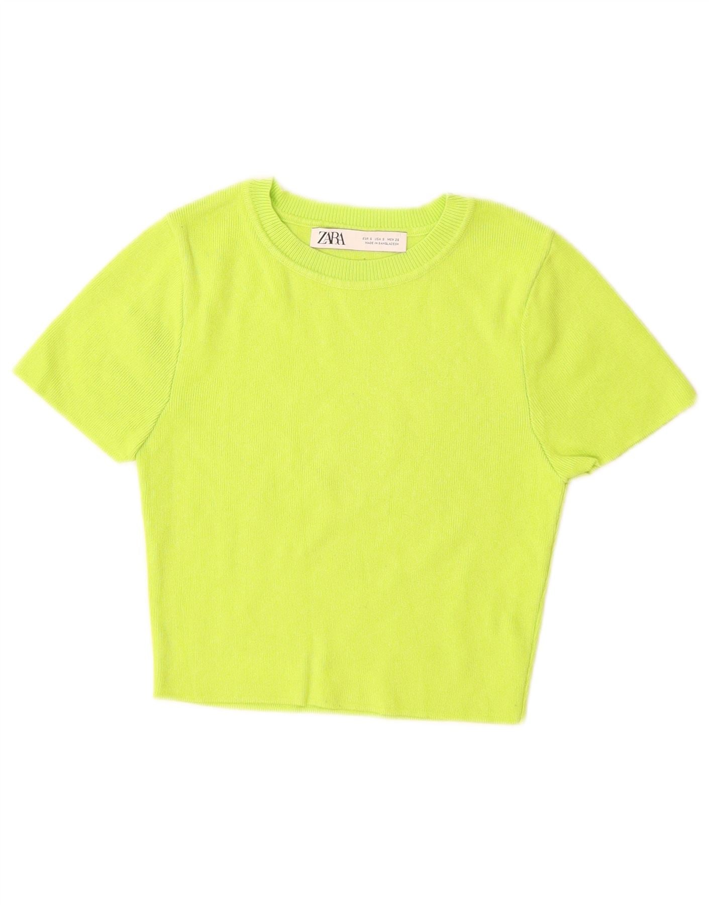 Suéter feminino ZARA com manga curta e gola canoa Reino Unido 8 pequeno verde
