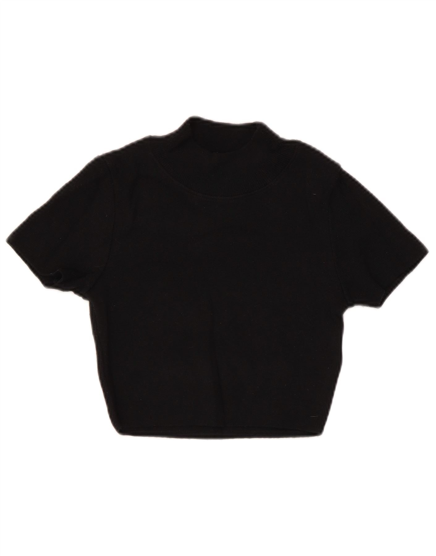 Suéter feminino ZARA de manga curta com gola tartaruga Reino Unido 8 pequeno preto