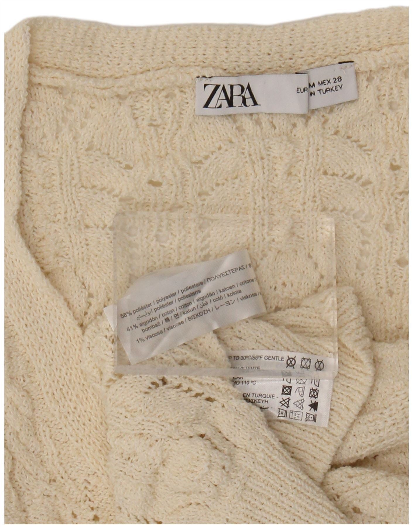 Suéter cardigã feminino sem mangas ZARA Reino Unido 14 poliéster bege médio