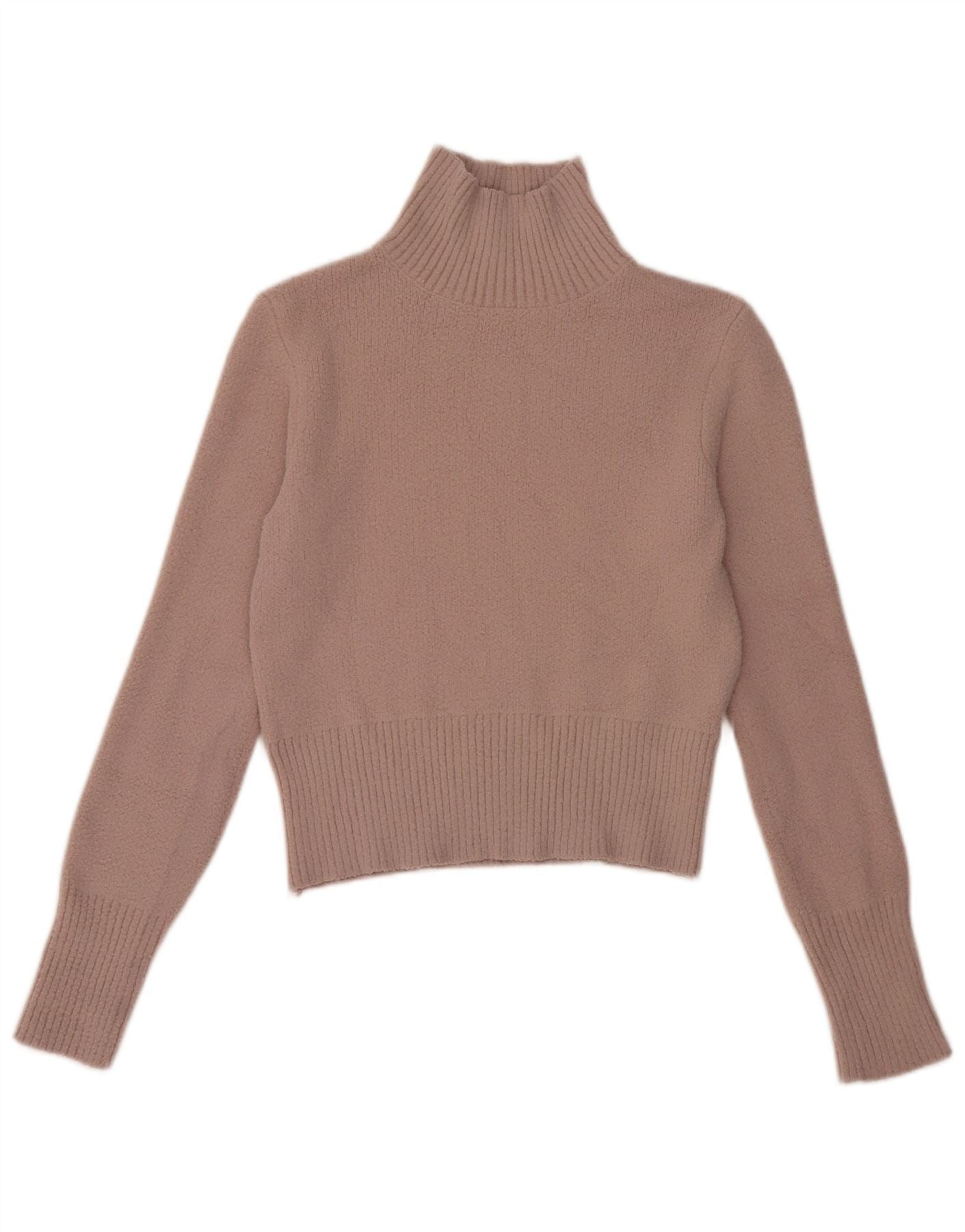 Suéter feminino Zara com gola tartaruga e gola alta, Reino Unido 10 pequeno rosa nylon