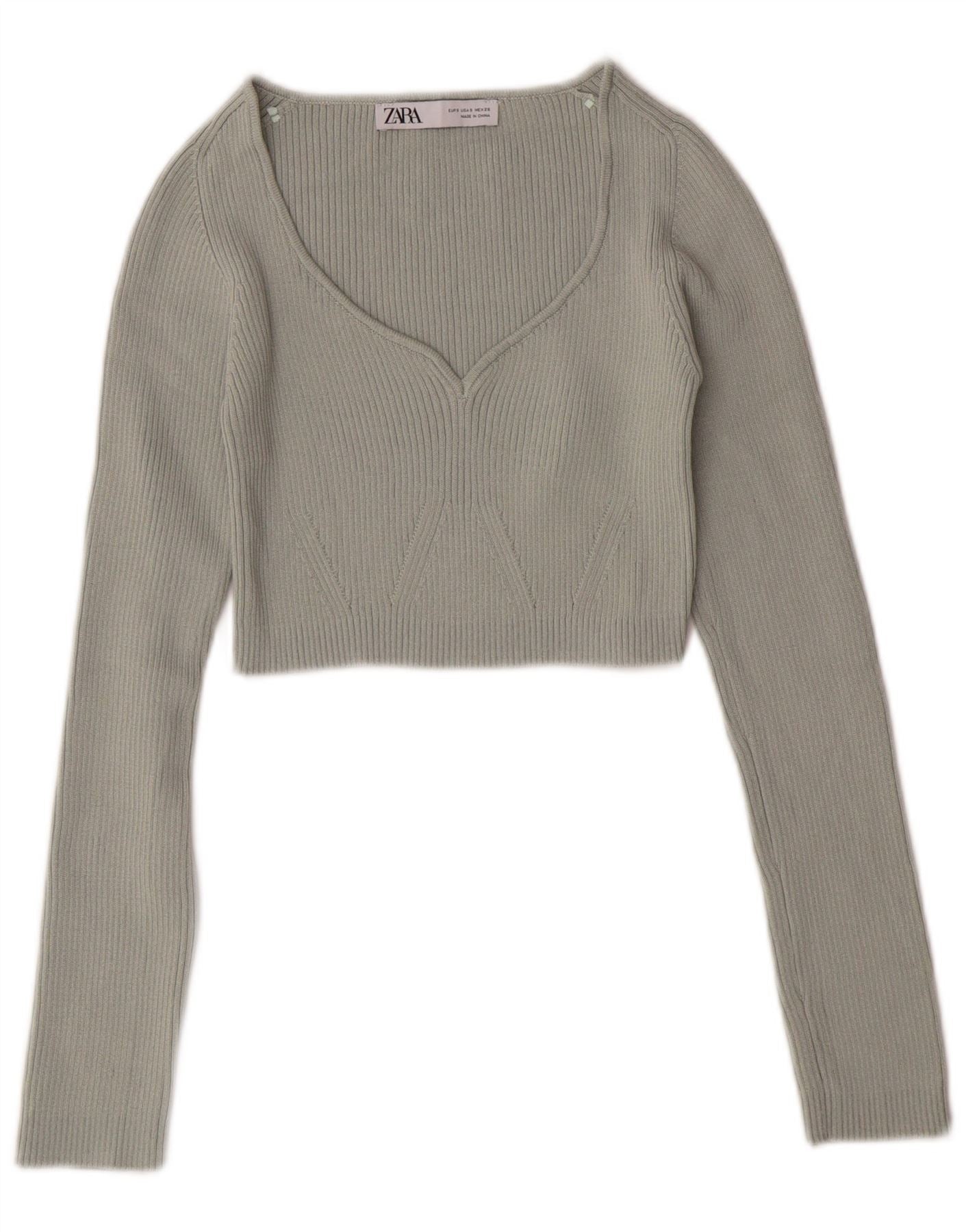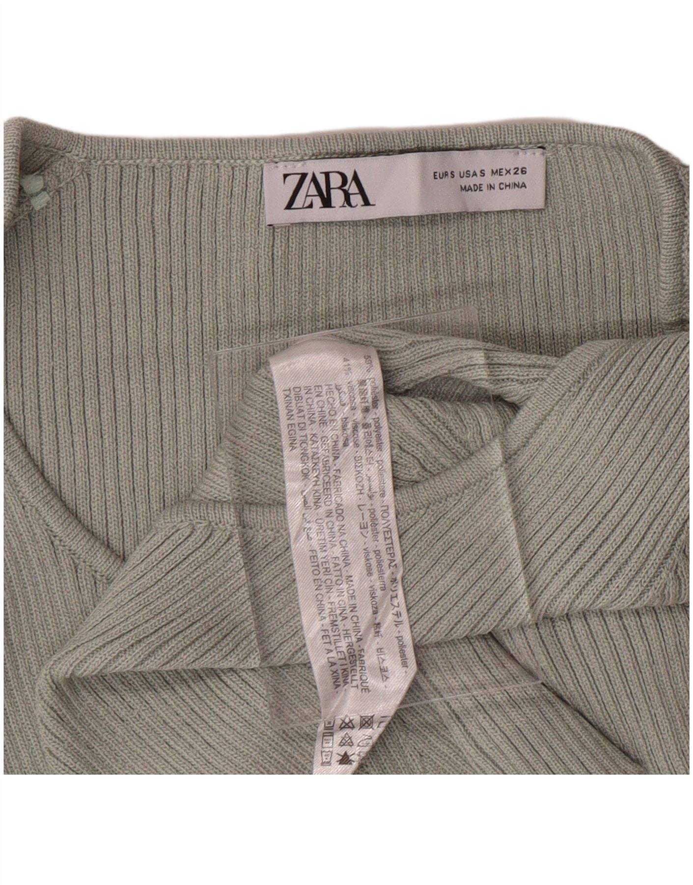 Suéter feminino ZARA com decote em V, Reino Unido 8, pequeno, verde, poliéster