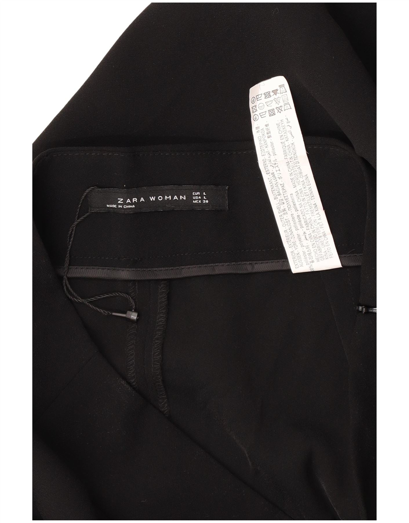 Zara Calça feminina cortada grande W30 L25 poliéster preto
