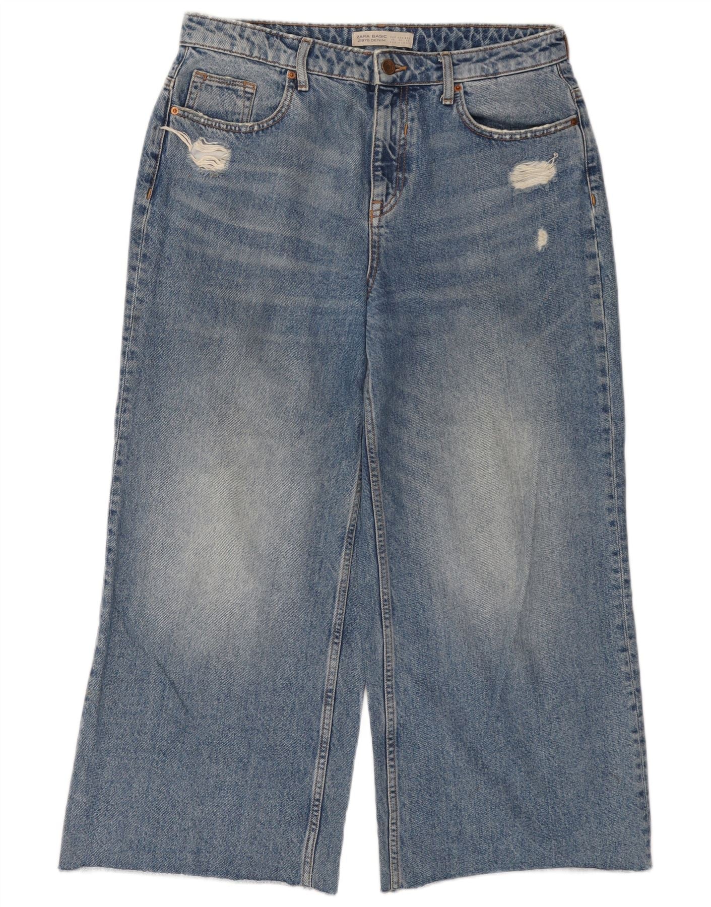 Calça jeans feminina ZARA com corte desgastado e perna larga EU 40 médio W30 L25 azul