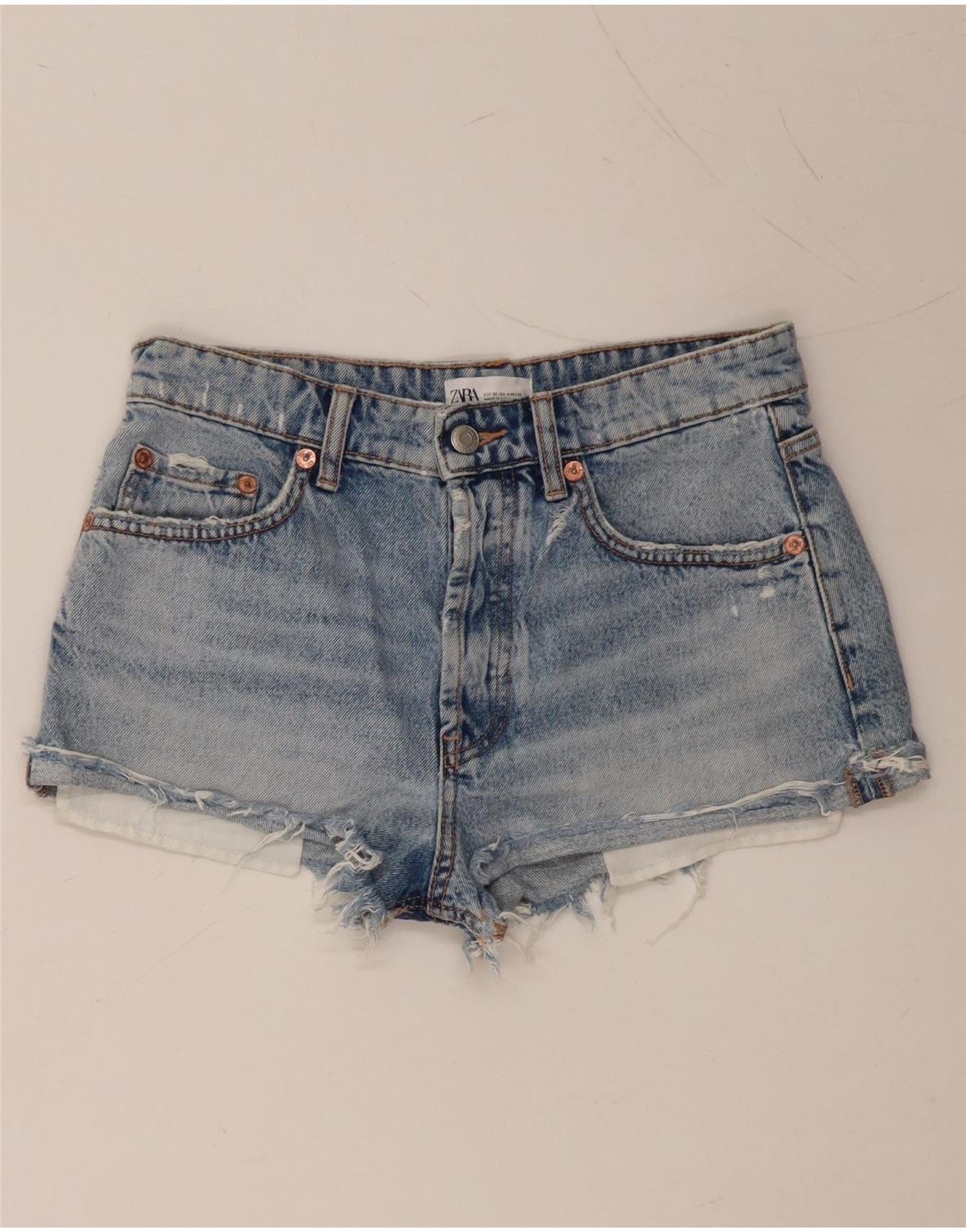 ZARA Shorts jeans feminino desgastado EU 36 XS W26 azul algodão