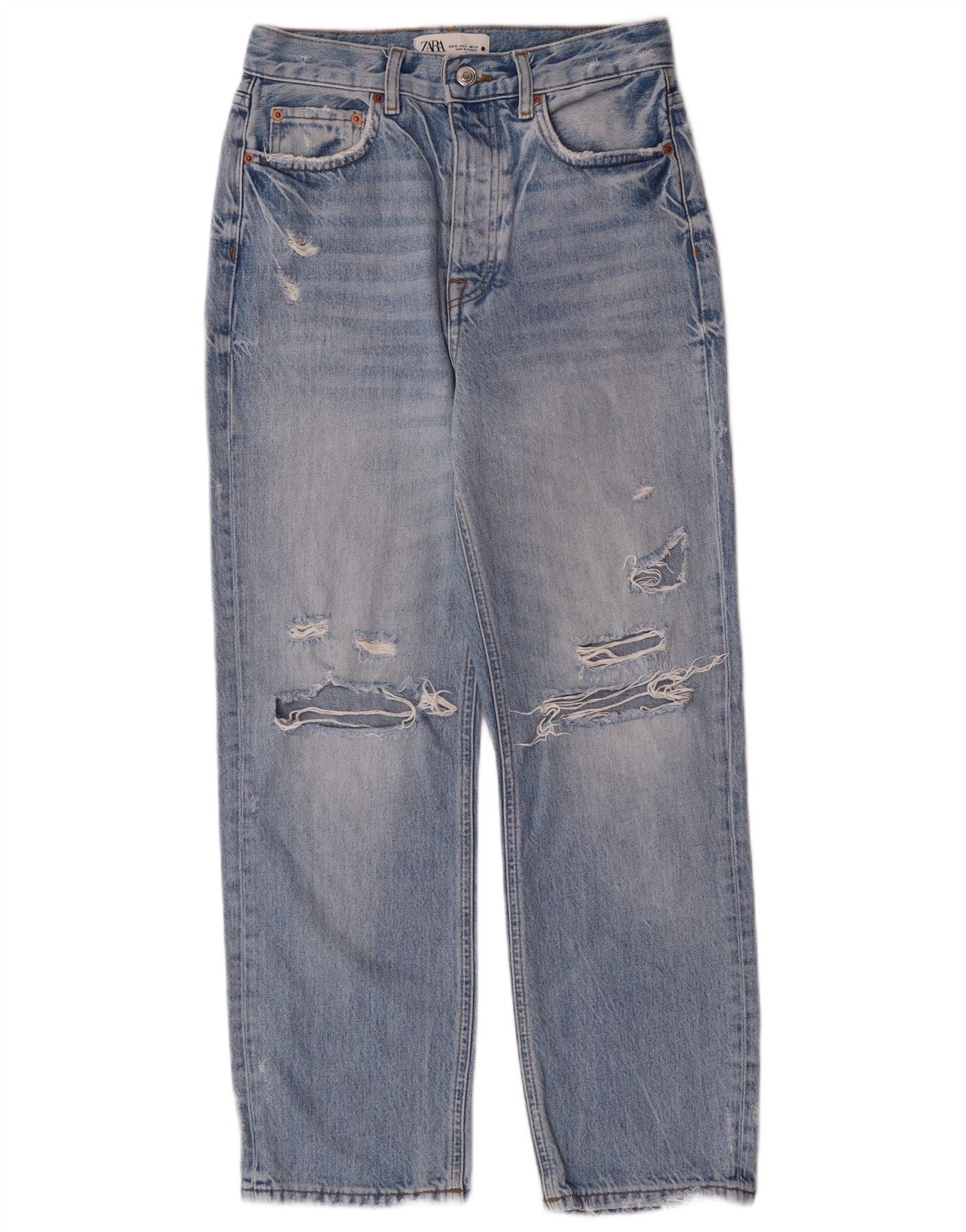 Zara Jeans feminino angustiado cônico EU 36 XS W26 L27 azul algodão grunge