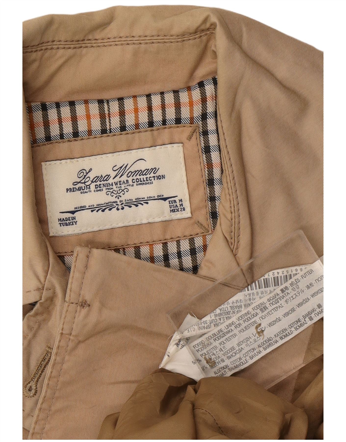 ZARA Womens Double Breasted Trench Coat UK 14 Medium Beige Colourblock