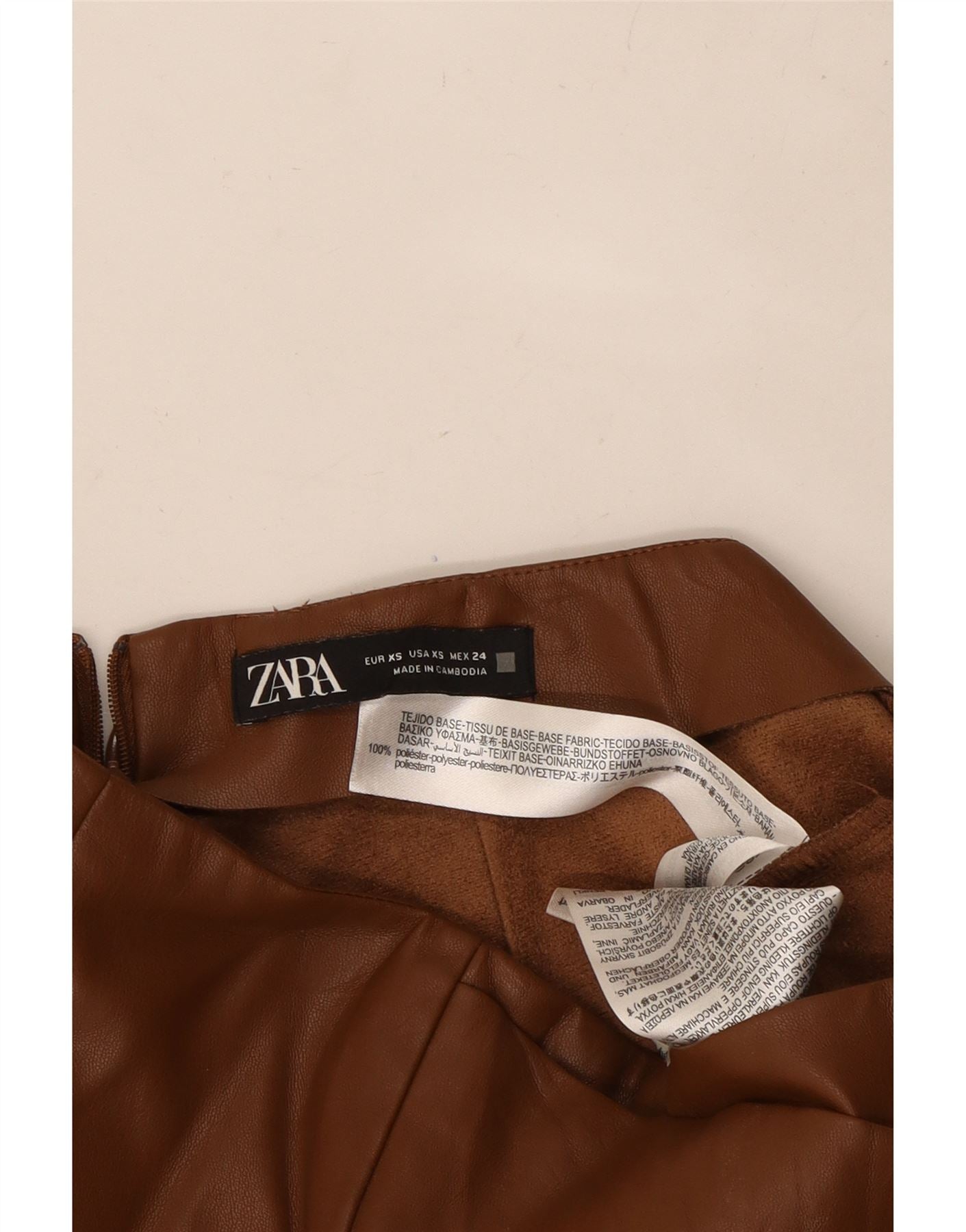Shorts feminino de couro sintético ZARA XS W25 poliéster marrom