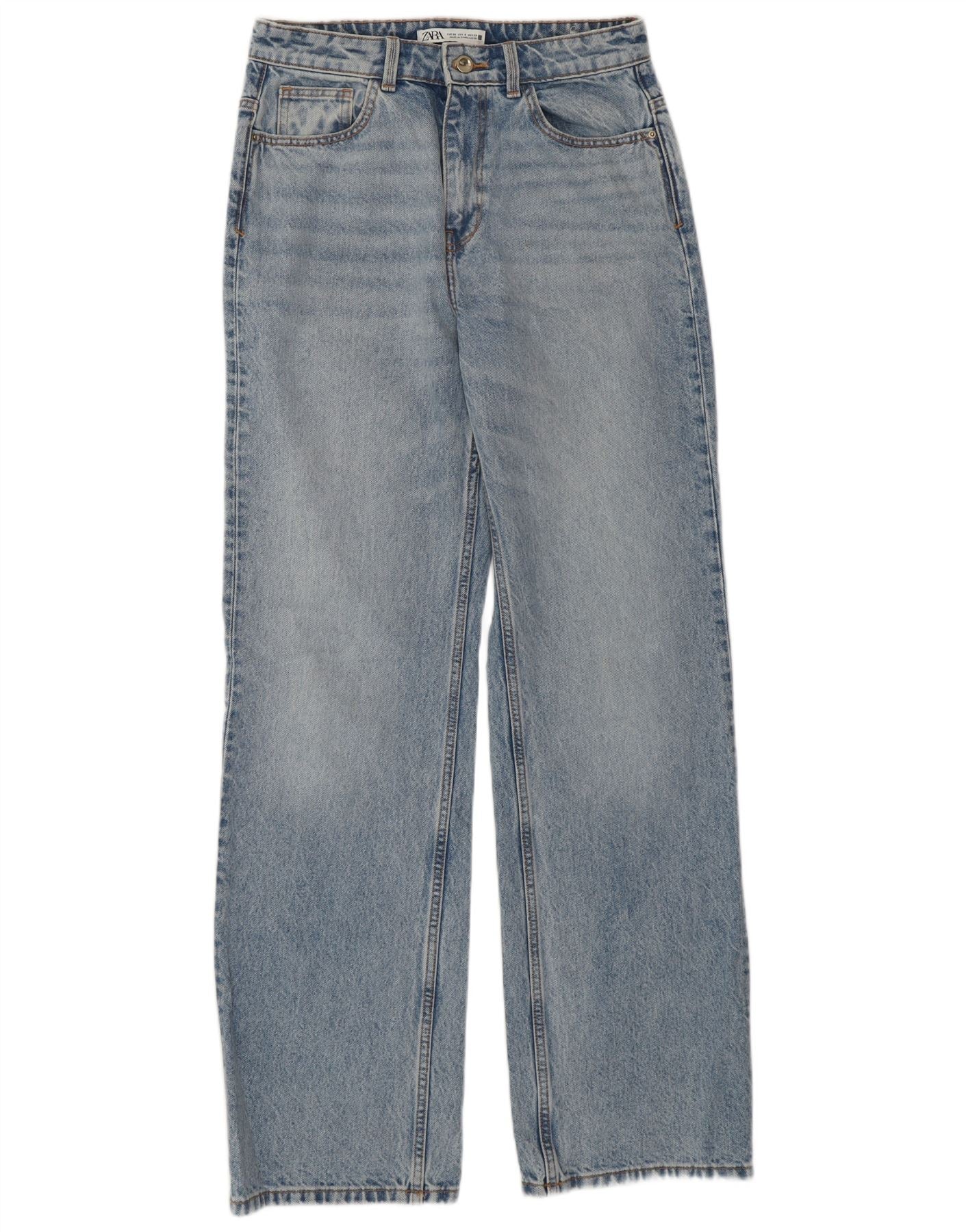 Zara Jeans feminino cintura alta reta UE 38 pequeno W28 L32 algodão azul