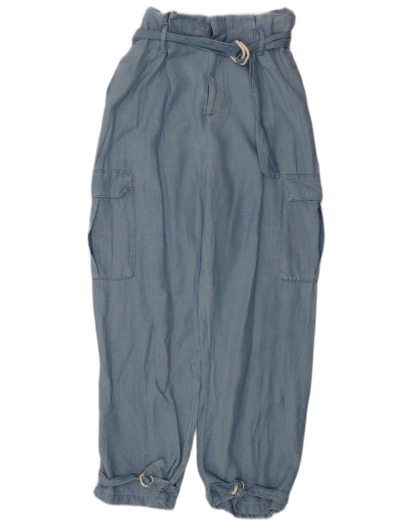 Calça cargo feminina ZARA cintura alta solta ajuste pequeno W26 L26 azul