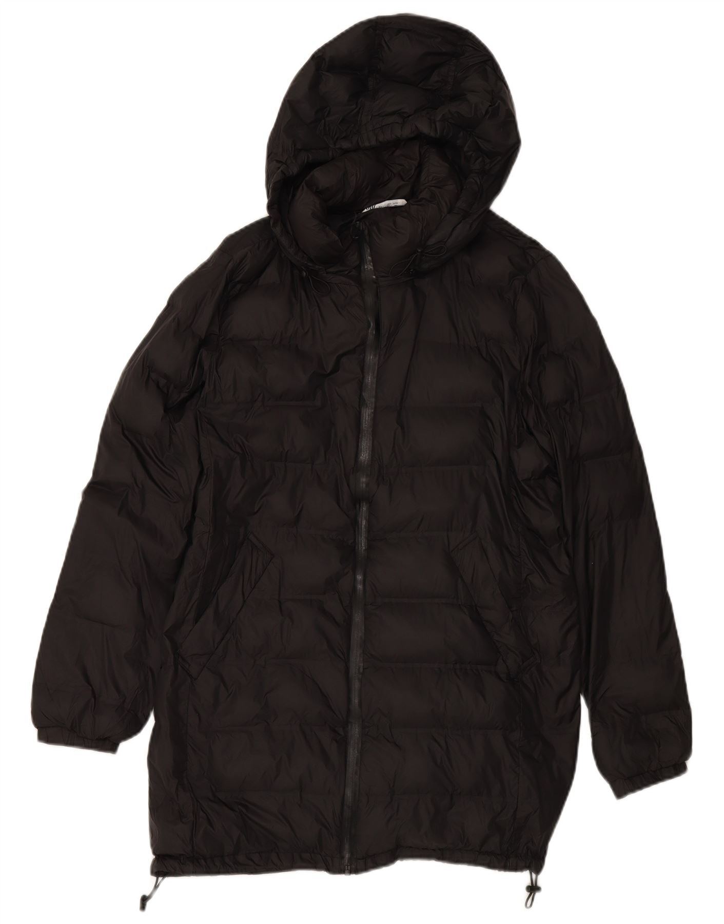 Casaco acolchoado com capuz feminino ZARA UK 16 grande poliéster preto