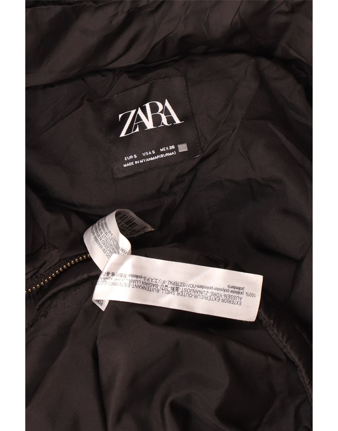 Jaqueta acolchoada com capuz feminina ZARA UK 10 poliéster preto pequeno