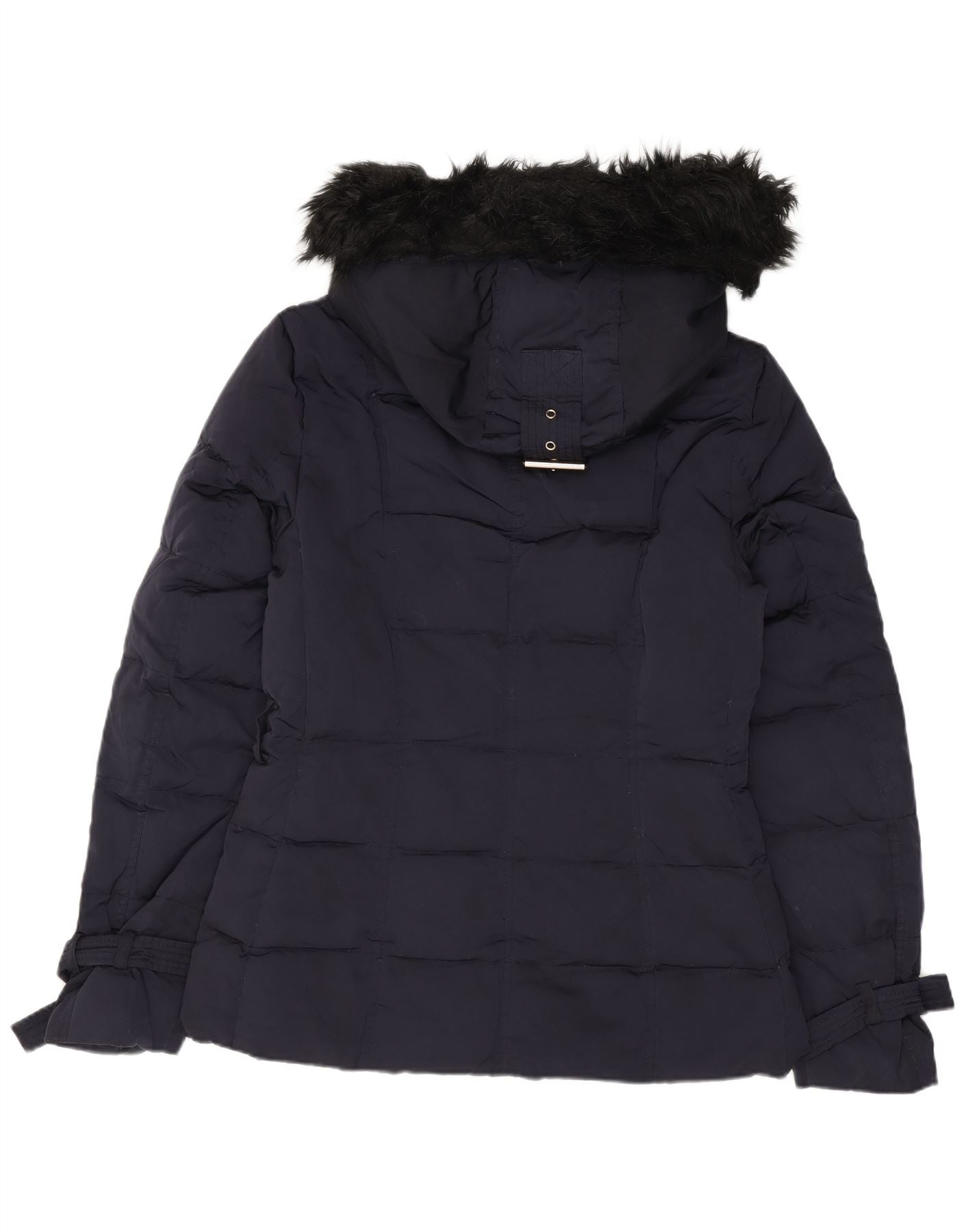 Jaqueta acolchoada com capuz feminina ZARA UK 10 pequena azul marinho nylon