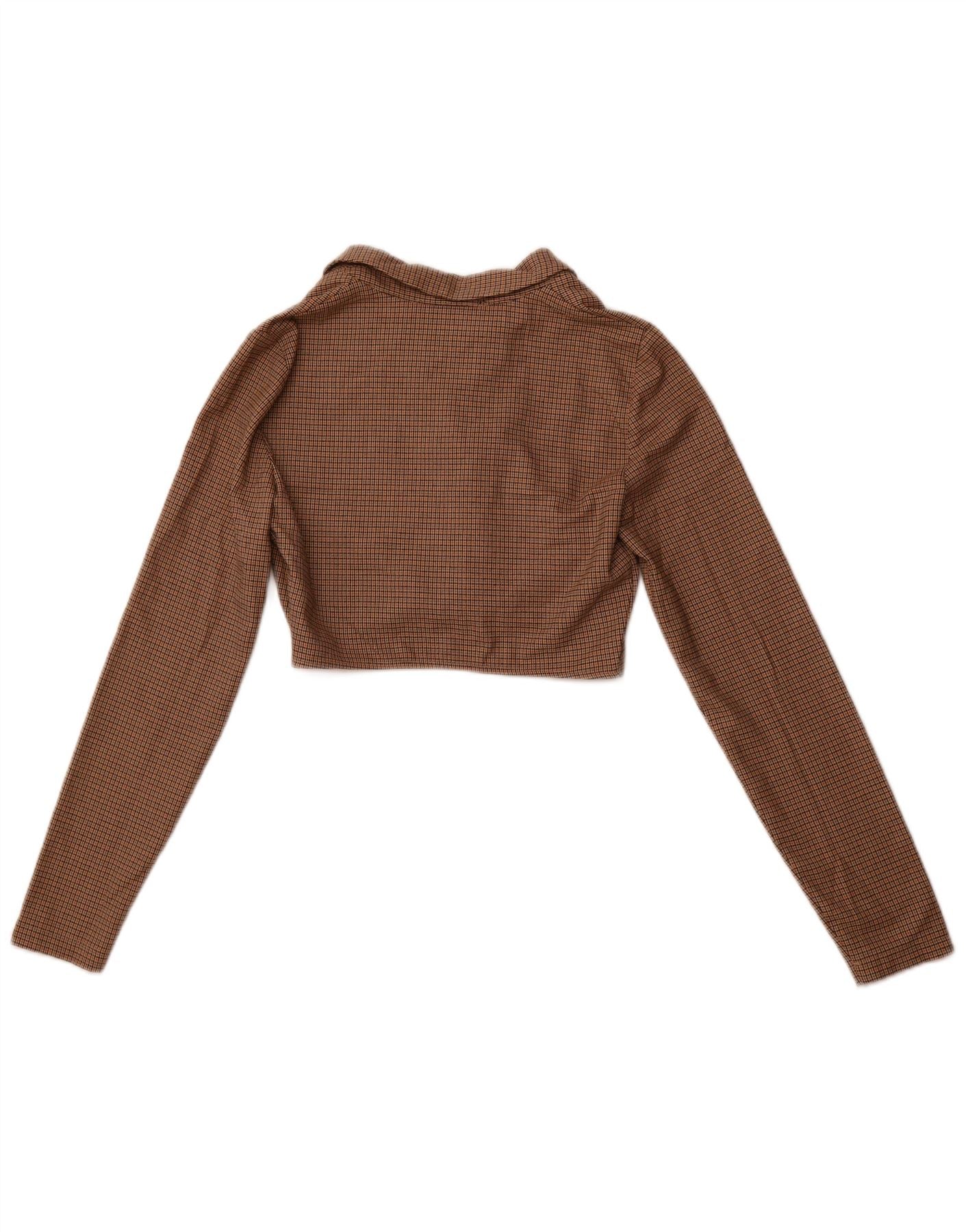 Top feminino de manga comprida ZARA UK 12 poliéster marrom médio houndstooth