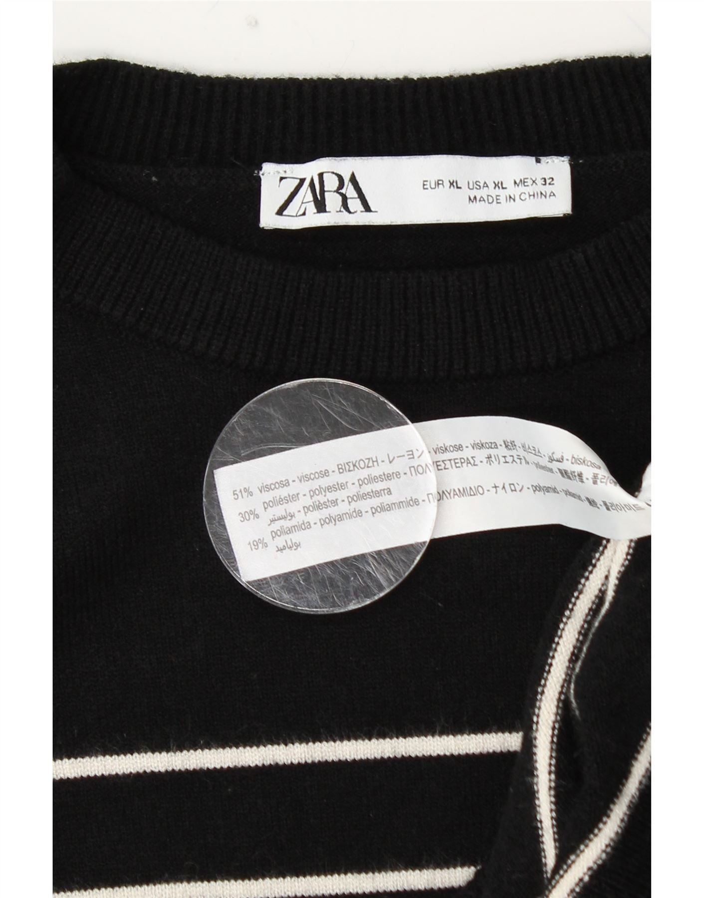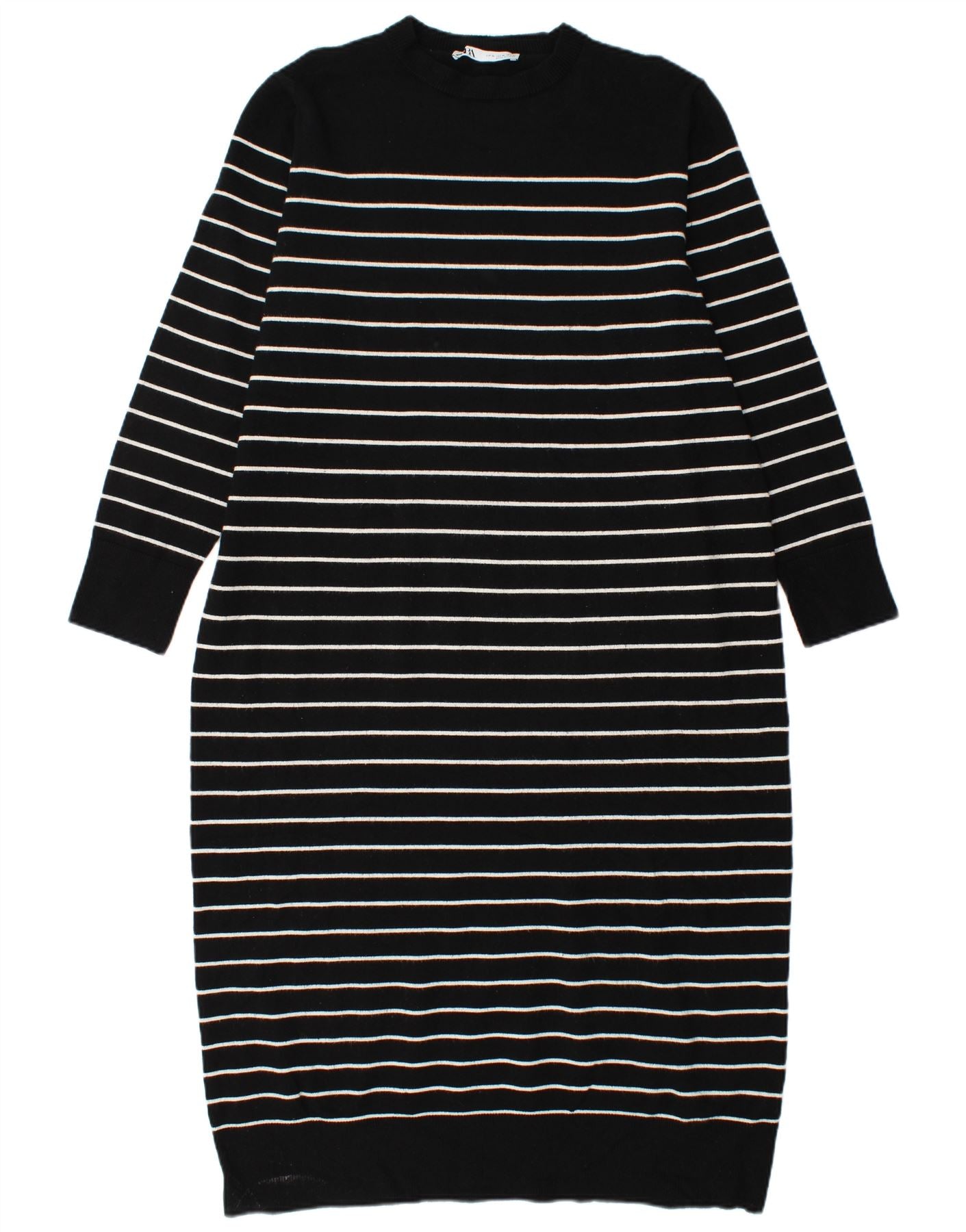 Vestido jumper feminino de manga comprida ZARA UK 18 XL preto listrado viscose