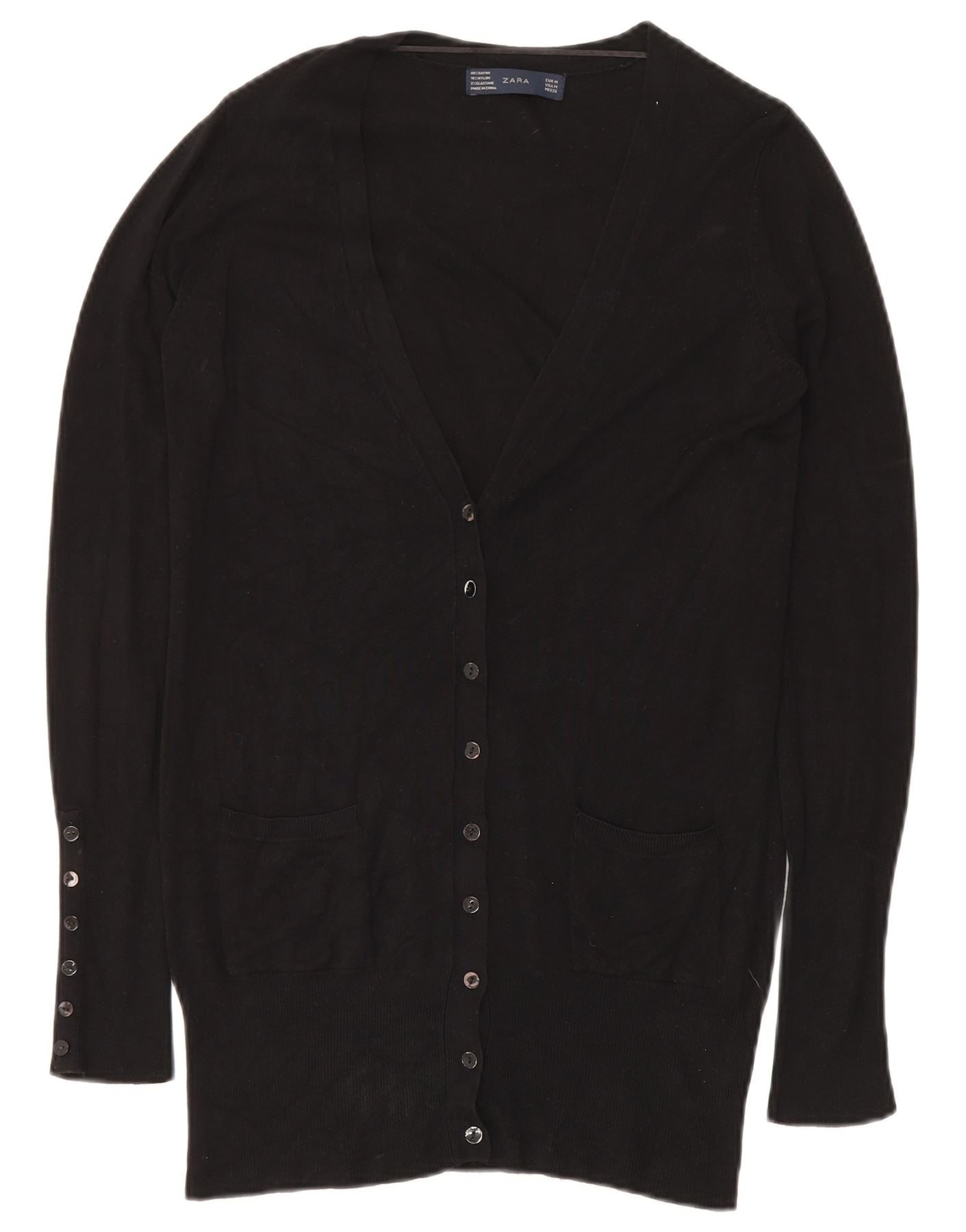 Suéter cardigã feminino Longline ZARA UK 14 médio preto rayon