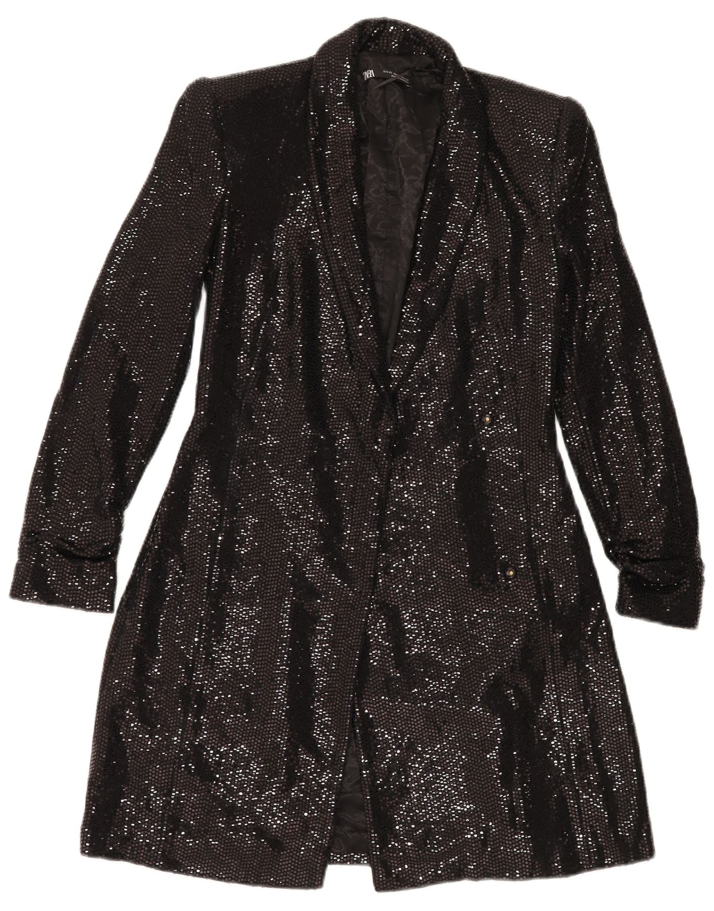 ZARA Womens Longline Open Blazer Jacket UK 6 XS Preto Poliamida