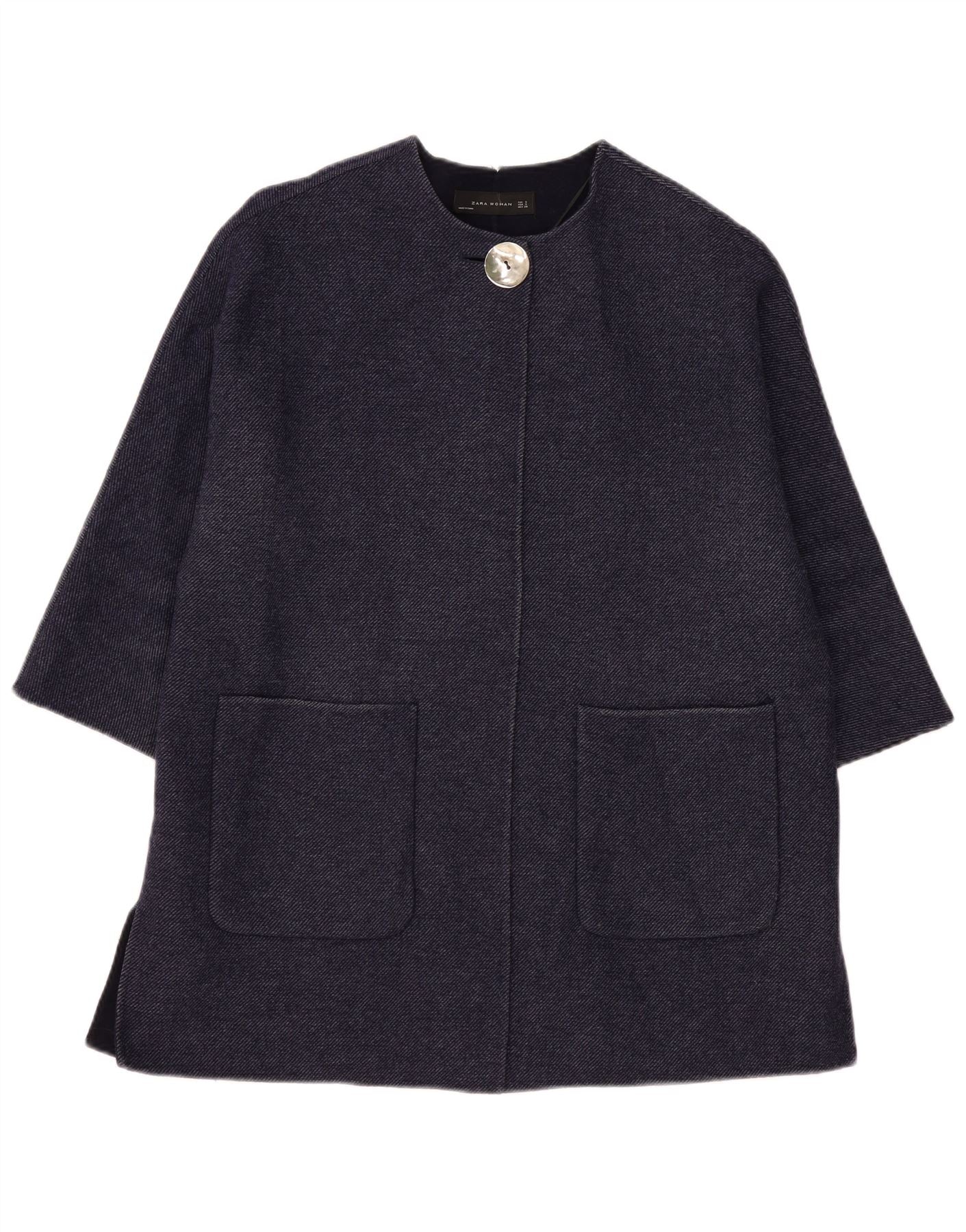 Sobretudo feminino oversized manga 3/4 ZARA Reino Unido 10 pequeno lã azul marinho