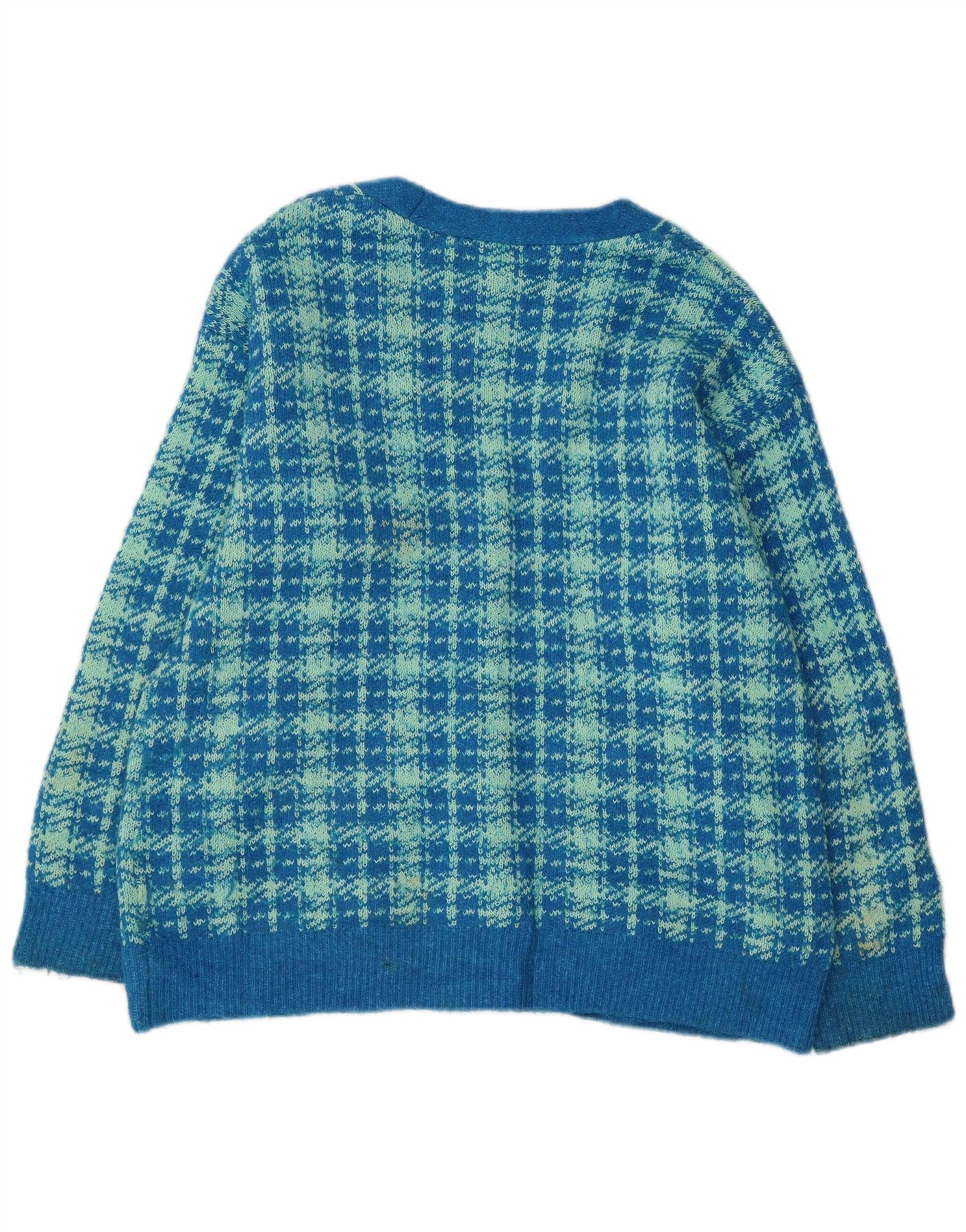 Suéter cardigã feminino grande Zara Reino Unido 10 algodão houndstooth azul pequeno
