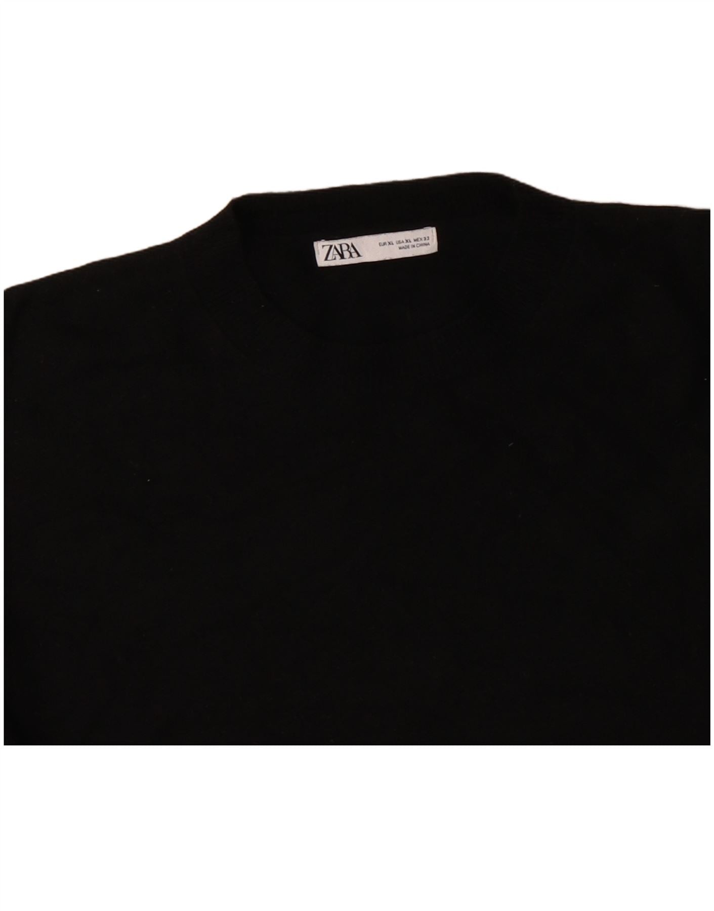 ZARA Suéter feminino oversized com gola redonda Reino Unido 18 XL lã preta