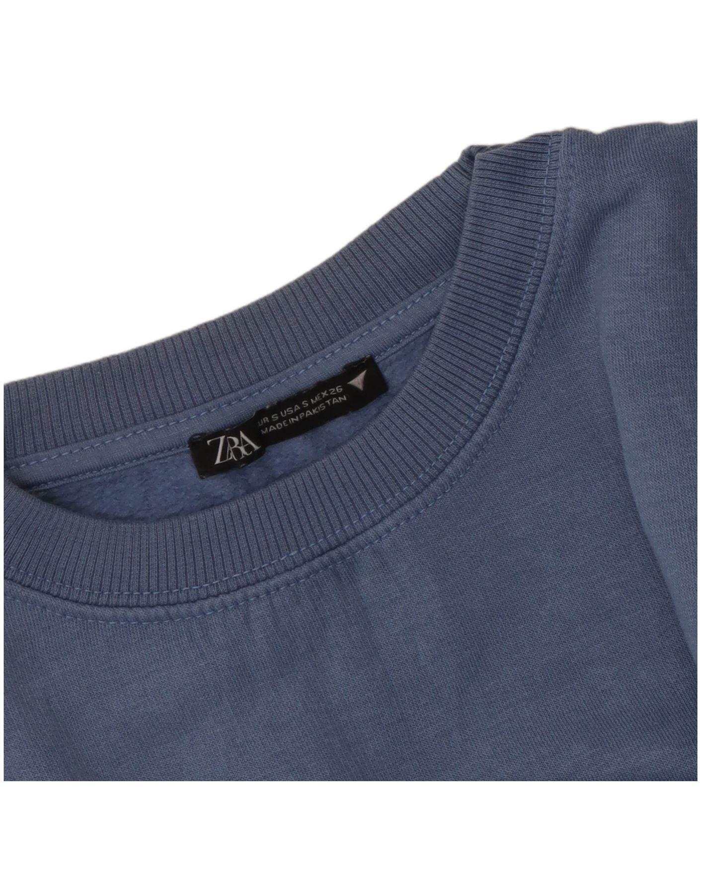 ZARA Suéter feminino oversized cropped UK 10 pequeno azul