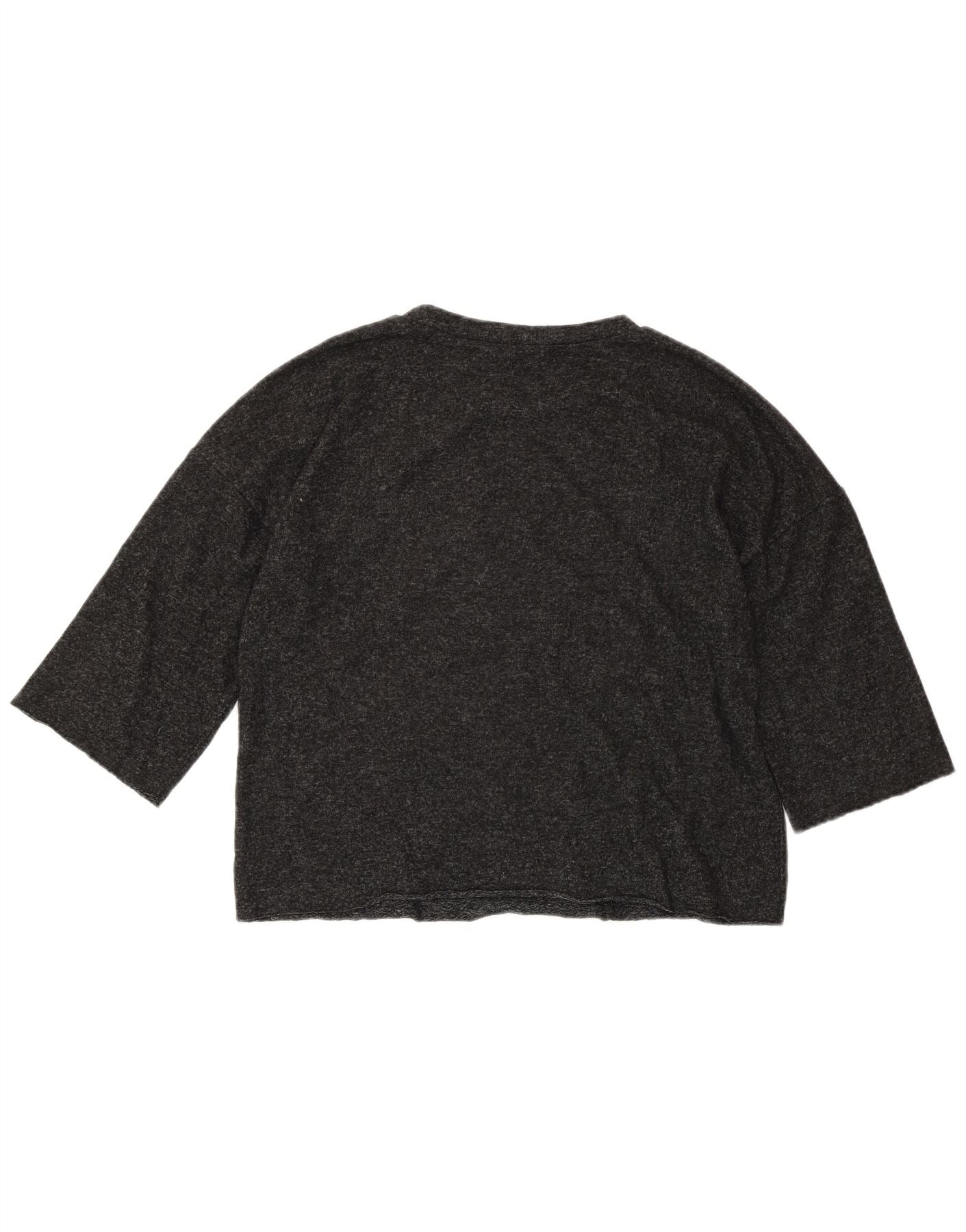 ZARA Top curto feminino oversized manga 3/4 Reino Unido 10 viscose cinza pequena