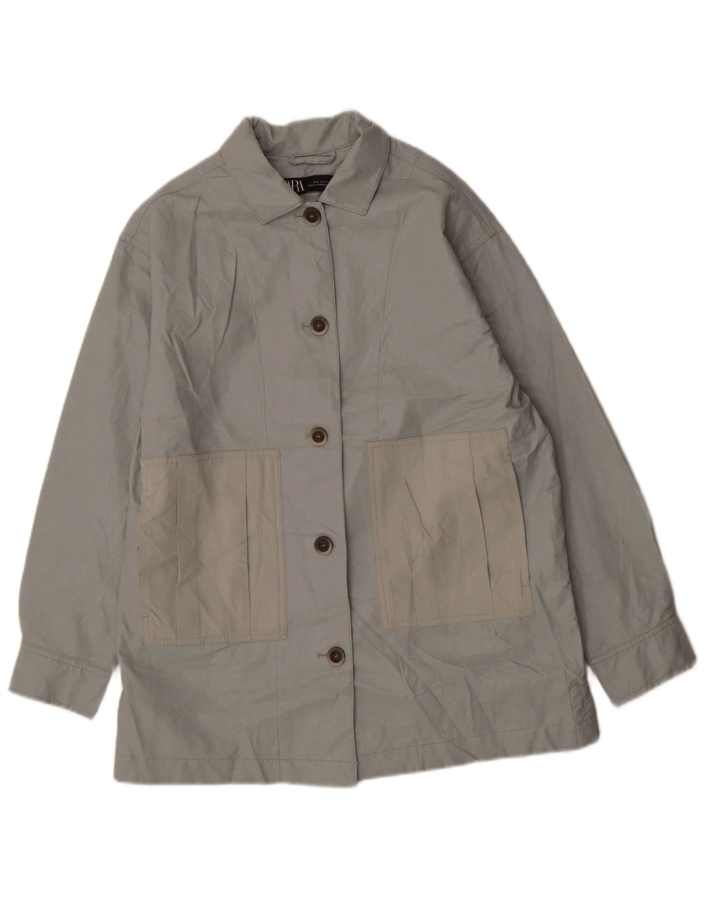 - Descrição da IA: Esta jaqueta utilitária feminina Zara é confeccionada em tecido leve de poliéster em um tom verde sutil. Possui decote clássico com gola e mangas compridas. O ajuste regular oferece um uso confortável. Um fecho frontal de quatro botões proporciona um acabamento elegante. Dois grandes bolsos acrescentam detalhes práticos à frente. Esta jaqueta versátil combina design funcional com uma estética limpa e moderna.