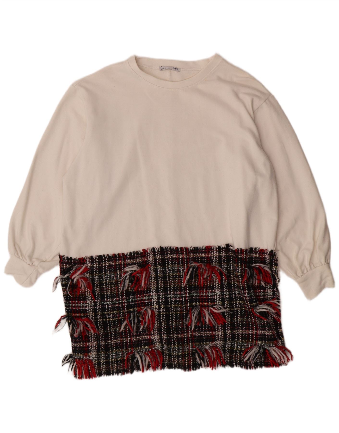 ZARA moletom feminino oversized jumper UK 14 médio branco colorblock