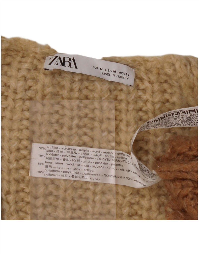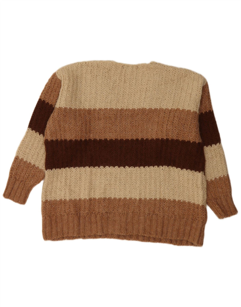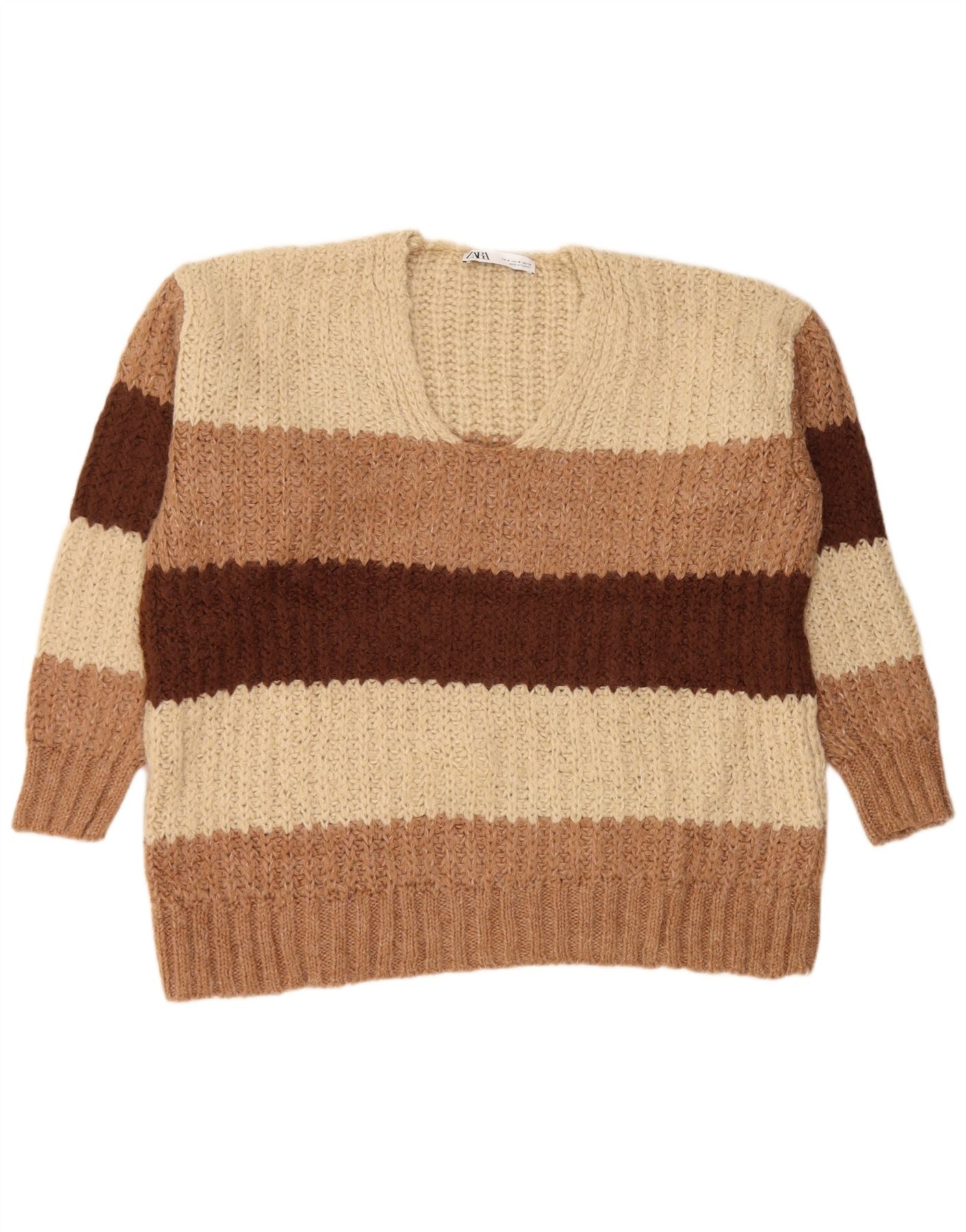 ZARA Suéter feminino oversized com decote em V Reino Unido 14 listrado bege médio