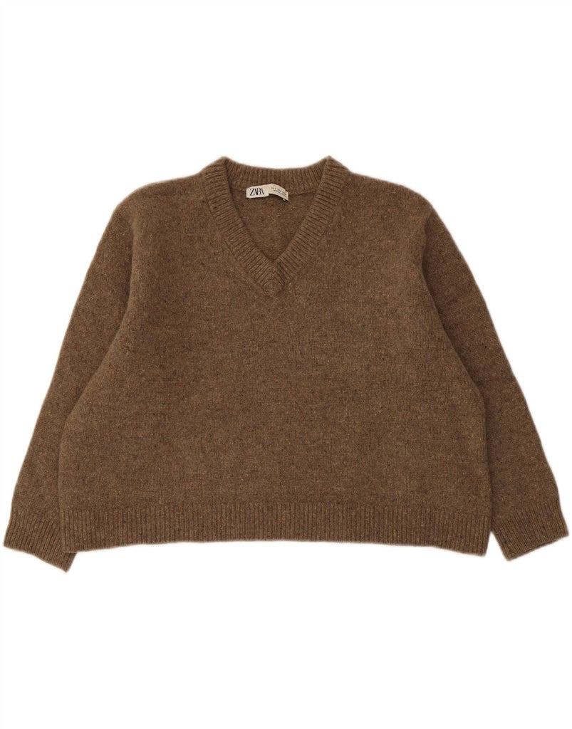 ZARA Womens Oversized V-Neck Jumper Sweater UK 14 Medium Brown Flecked
