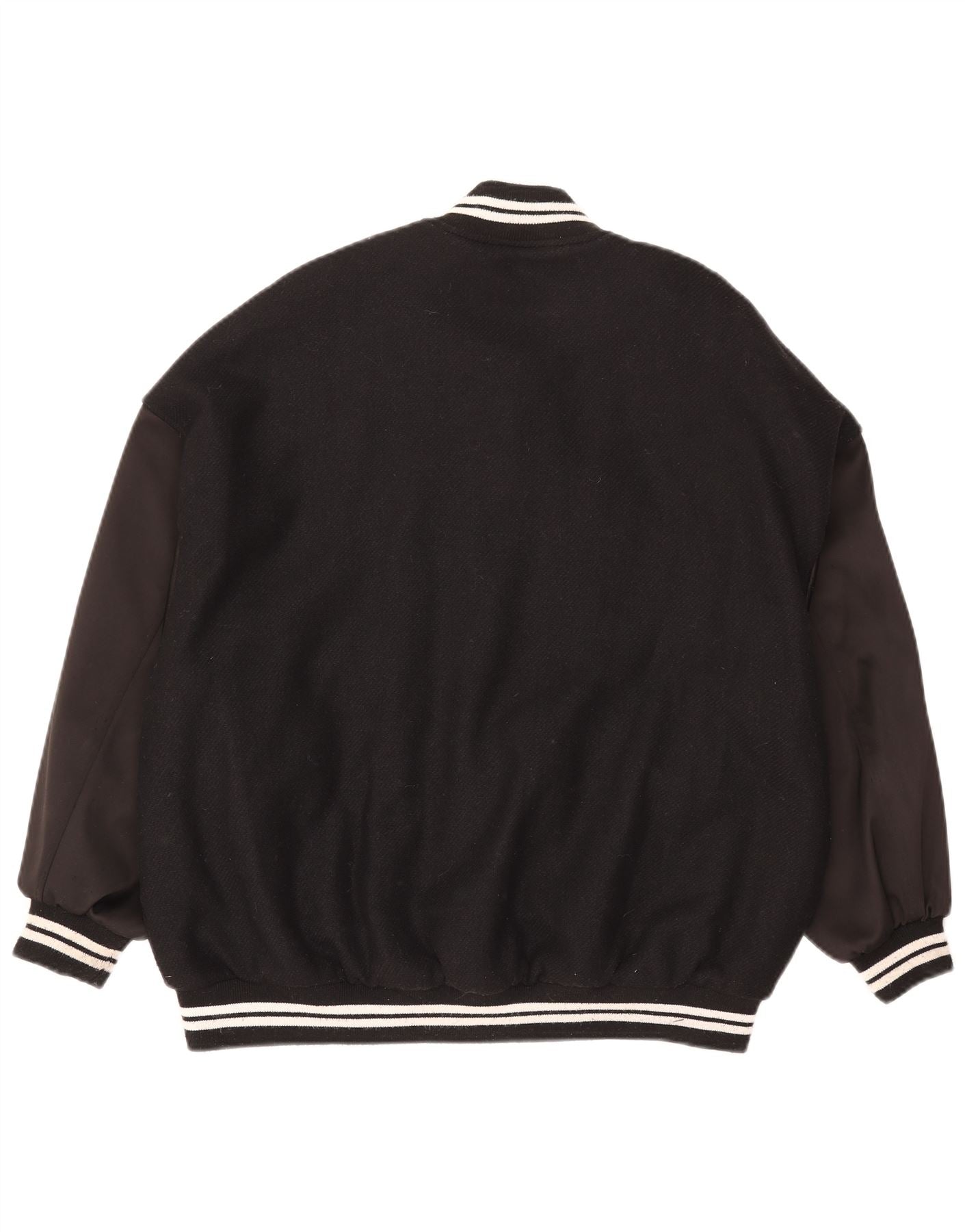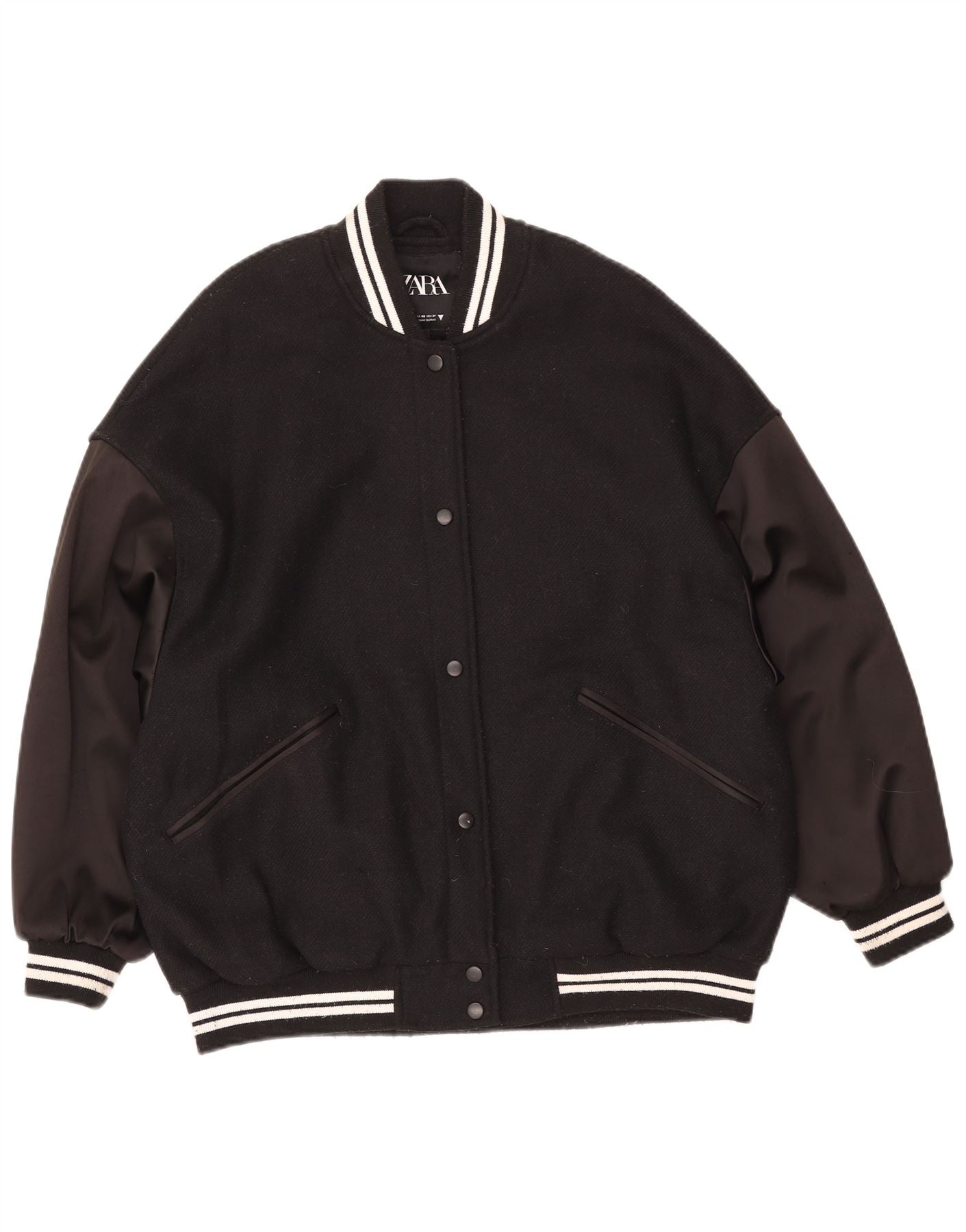 ZARA Jaqueta feminina oversized Varsity UK 6 XS preta colorblock lã